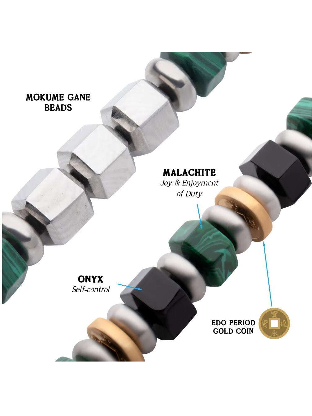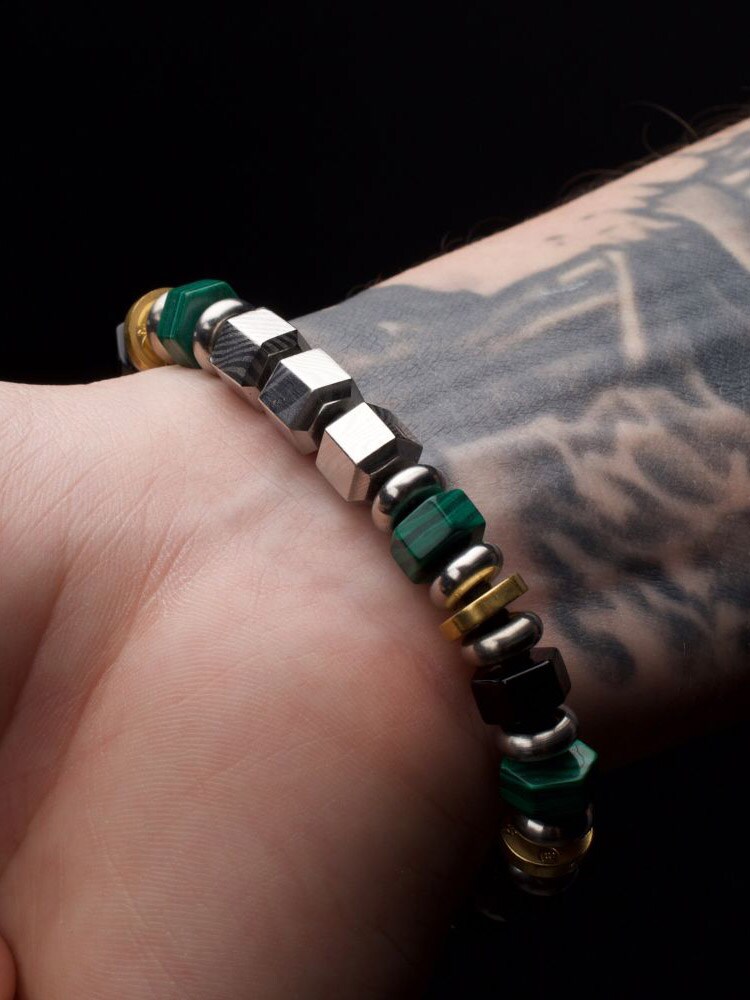 An exclusive bracelet inspired by the Japanese Bushido tradition. The bracelet combines the traditional Mokume Gane technique – a unique metal art that creates patterns resembling wood grain – with fine gemstones.