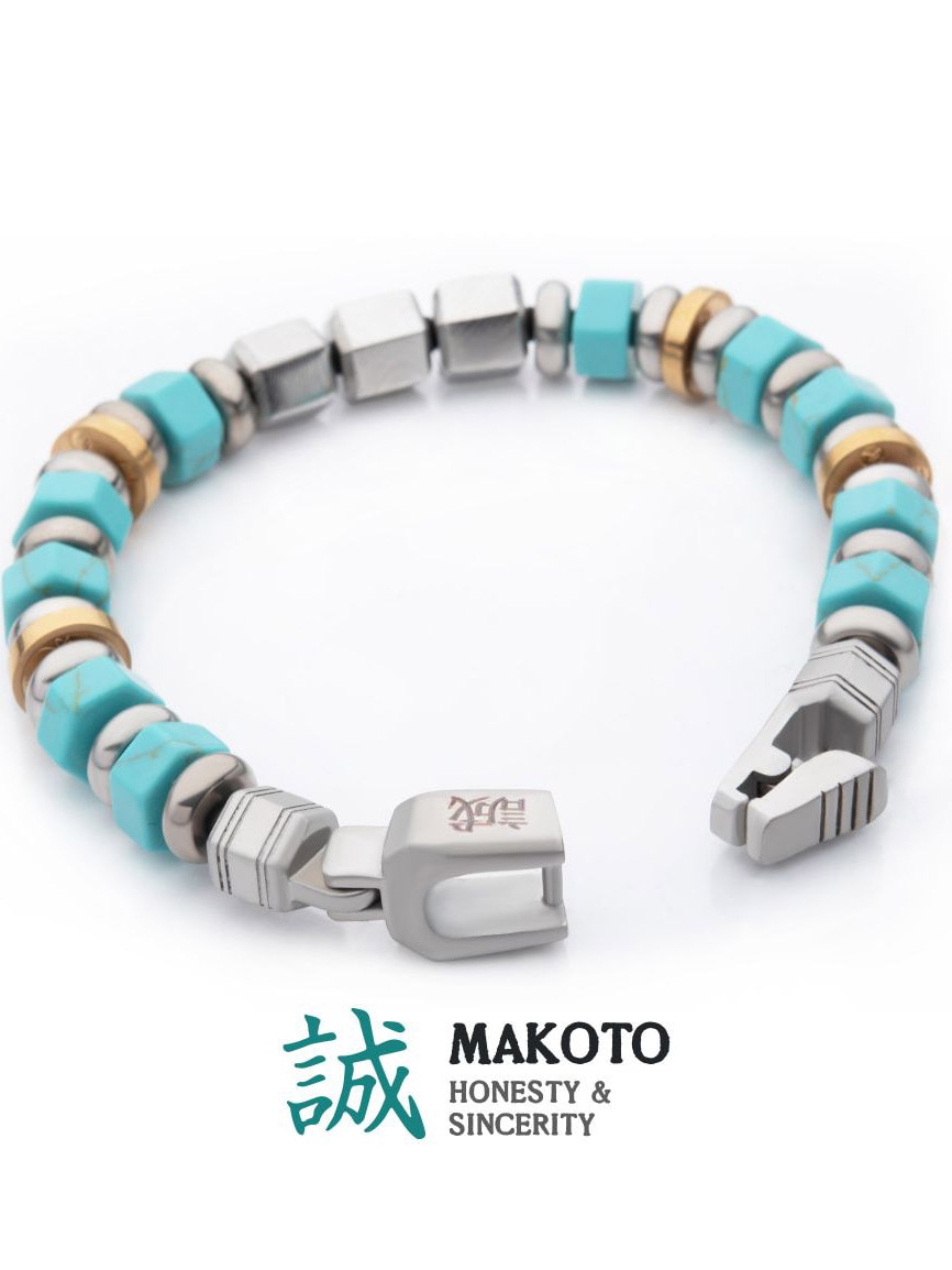 An exclusive bracelet inspired by the Japanese Bushido tradition. The bracelet combines the traditional Mokume Gane technique – a unique metal art that creates patterns resembling wood grain – with fine gemstones.