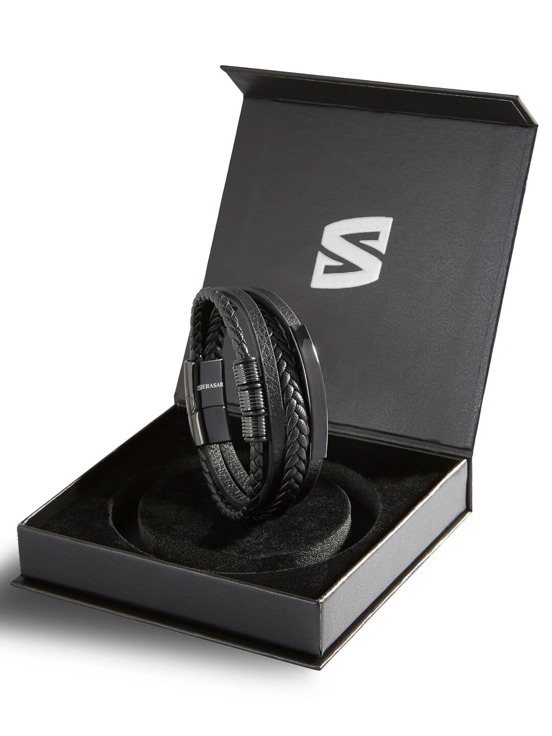 An elegant bracelet combining black genuine leather with polished stainless steel elements. The secure magnetic clasp makes it easy to put on and take off, and the included extension link allows you to adjust the length for the perfect fit. The design balances classic style with modern attitude – ideal for both everyday wear and special occasions!