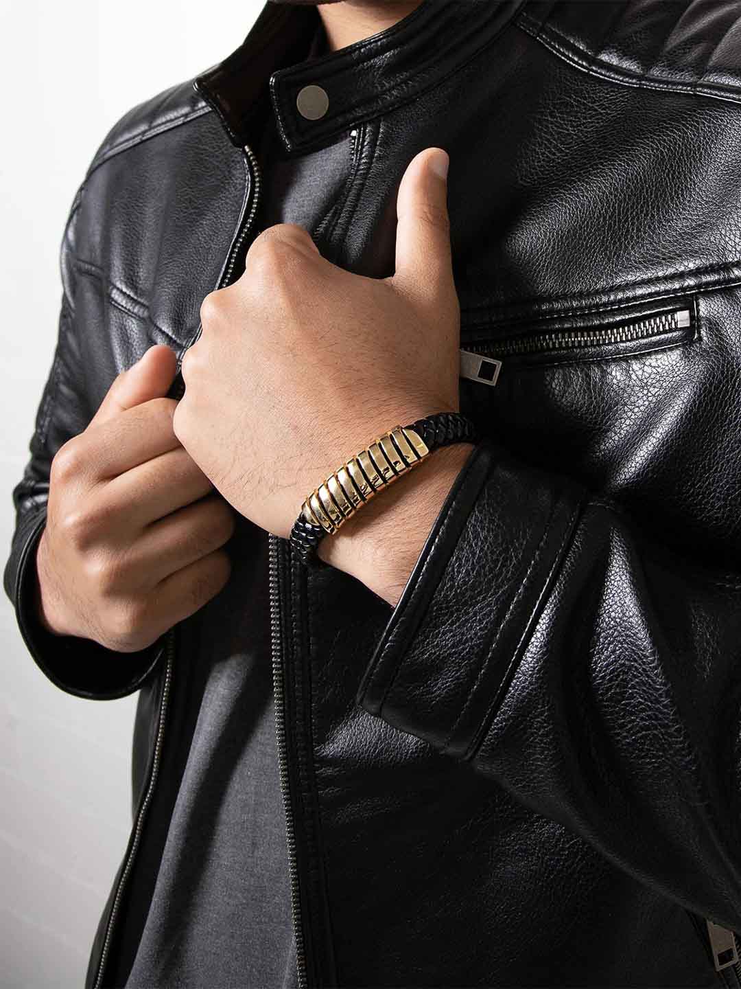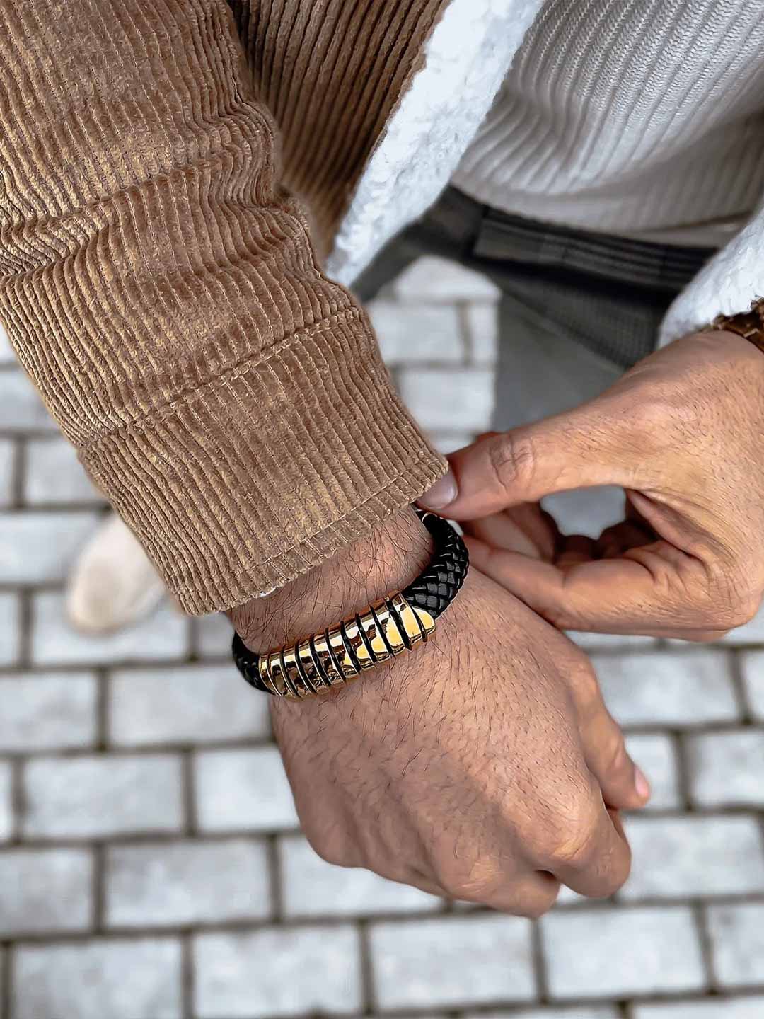 A braided bracelet made from genuine leather with stylish stainless steel details. The bracelet comes with an extra extension link for adjustable length – perfect if you want a bit more room or are unsure about sizing. A stylish accessory that elevates any outfit.