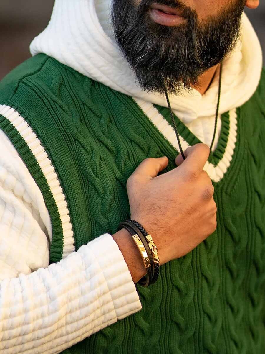 An elegant bracelet combining black genuine leather with polished stainless steel elements. The secure magnetic clasp makes it easy to put on and take off, and the included extension link allows you to adjust the length for the perfect fit. The design balances classic style with modern attitude – ideal for both everyday wear and special occasions!
