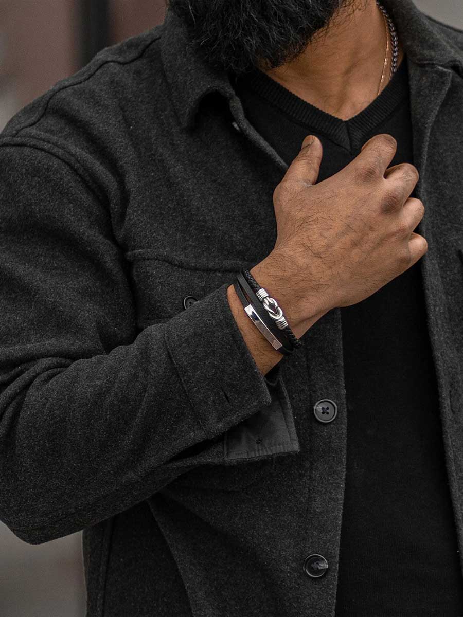 An elegant bracelet combining black genuine leather with polished stainless steel elements. The secure magnetic clasp makes it easy to put on and take off, and the included extension link allows you to adjust the length for the perfect fit. The design balances classic style with modern attitude – ideal for both everyday wear and special occasions!
