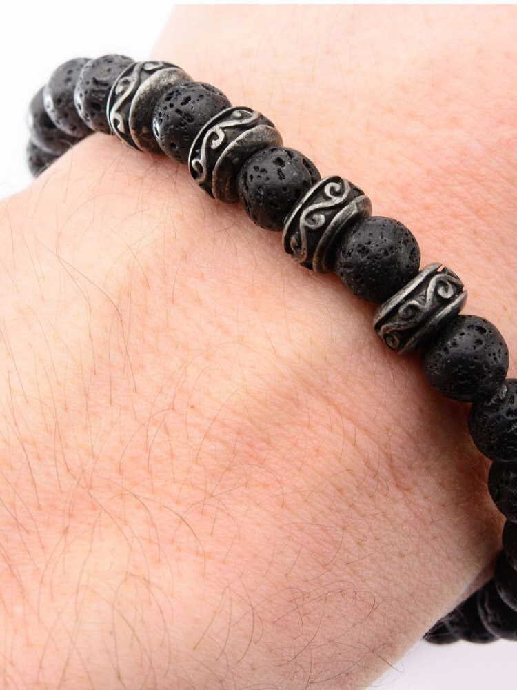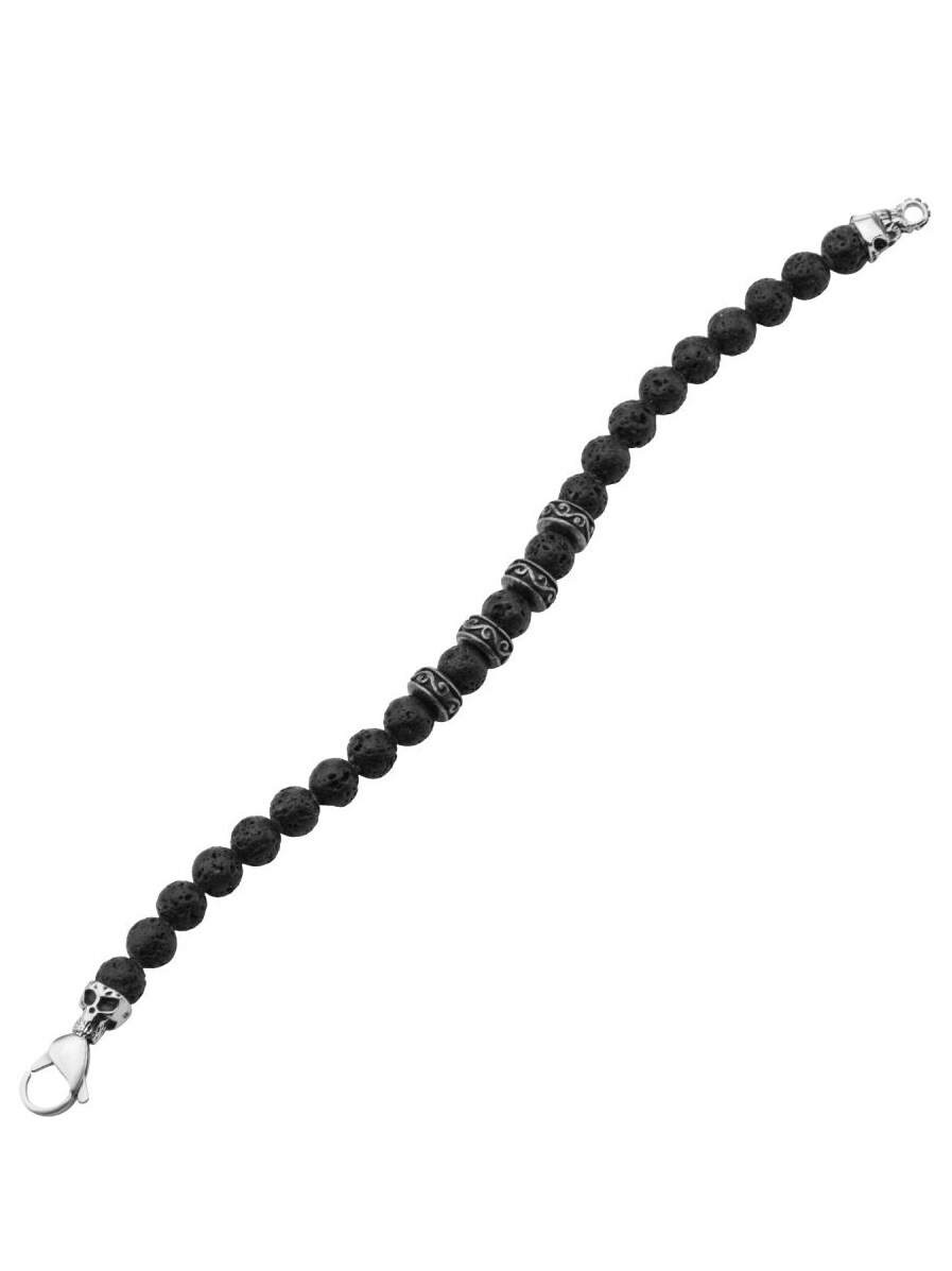 Ball bracelet from Inox with black lava beads. Closes with a lobster clasp.