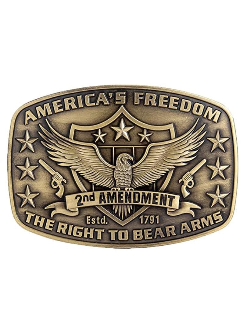 Add a powerful and distinctive touch to your outfit with this sturdy belt buckle in a bronze-colored vintage finish. The detailed design features an eagle with outstretched wings, surrounded by stars, creating a classic and eye-catching look. The warm bronze finish gives the buckle a rustic and timeless feel, suitable for both everyday wear and more style-conscious outfits. The buckle fits belts up to 4 cm wide, making it easy to pair with most standard belts with interchangeable buckles.