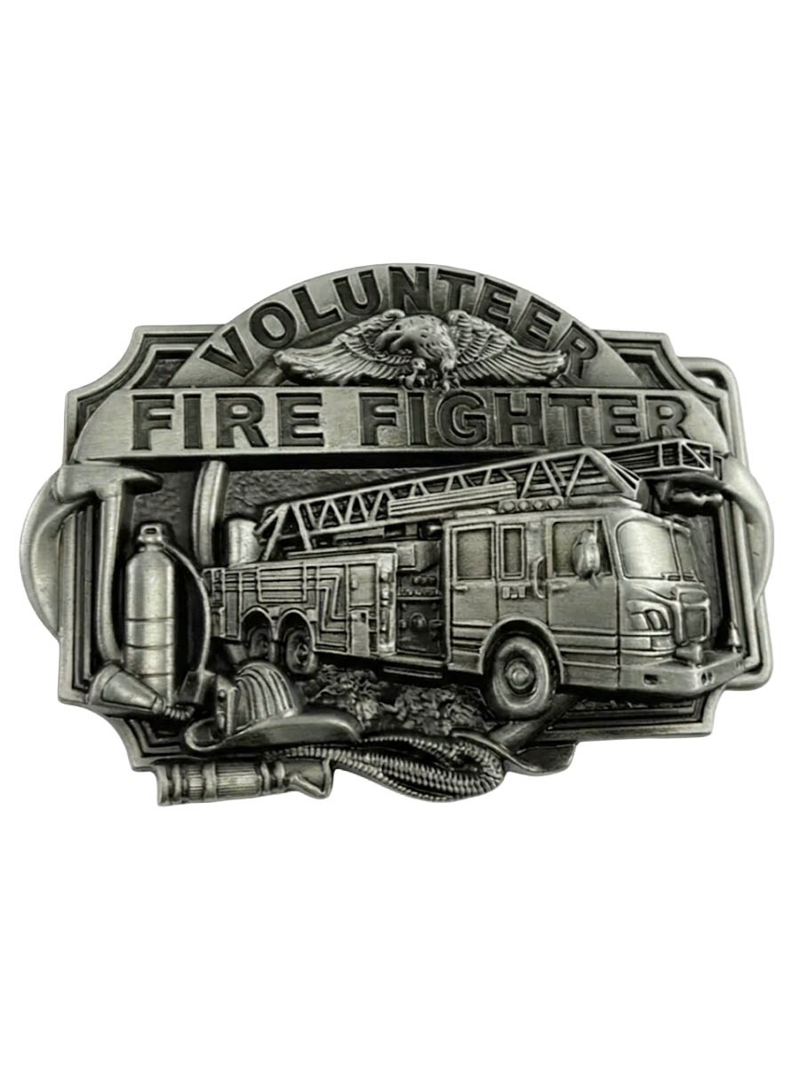 A bold buckle featuring a fire truck and the text “Volunteer Fire Fighter”. The design gives it a proud, heroic look – perfect for collectors or anyone passionate about firefighting. The buckle fits belts up to 4 cm wide, making it easy to pair with most standard belts with interchangeable buckles.