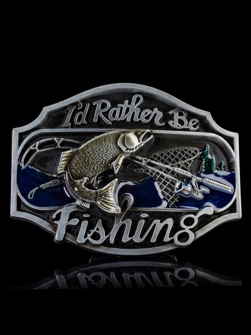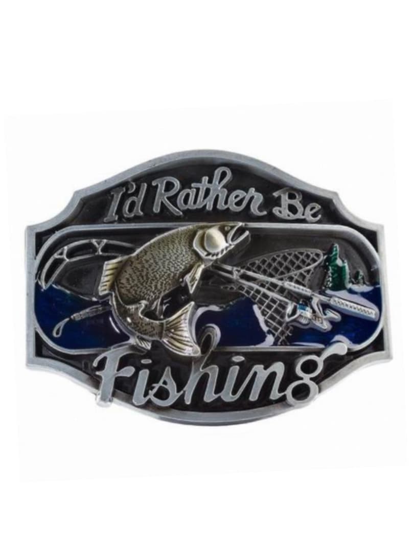Add a personal touch to your style with this belt buckle in an antique vintage finish. The detailed design features a fish along with the text “I’d rather go fishing”, creating a humorous and clear expression for all fishing enthusiasts. The buckle fits belts up to 4 cm wide, making it easy to combine with most standard belts with interchangeable buckles.