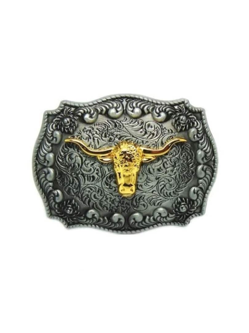 Detailed belt buckle in an antique finish with a raised gold-plated longhorn application that gives a strong and exclusive look. The buckle fits belts up to 4 cm wide, making it easy to combine with most standard belts with interchangeable buckles.