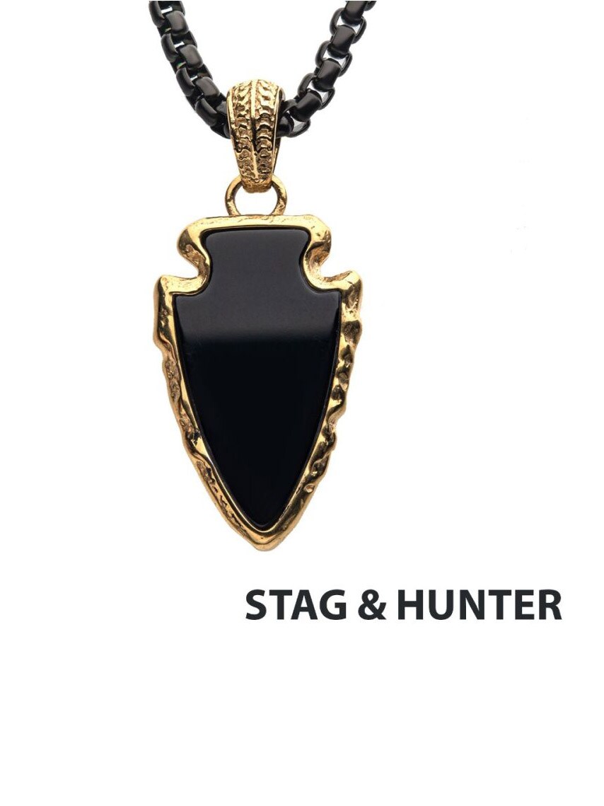 Arrowhead Collection: Reminiscent of the Native American past, mixed in with the grit of frontiersmen, the arrowhead pendant is a symbol of the warrior inside all of us. New styles feature "chiseled" arrow tips in steel, and Genuine Semi-Precious Stone inlay with wildlife markings design on the reverse revealing more of the pattern unique to each natural stone.