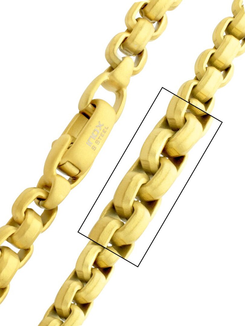 Box chain from Inox with matte finish and 18K coating. A chain for those who want masculine strength and style, built to last in everyday life and make an impression. Made of stainless steel.