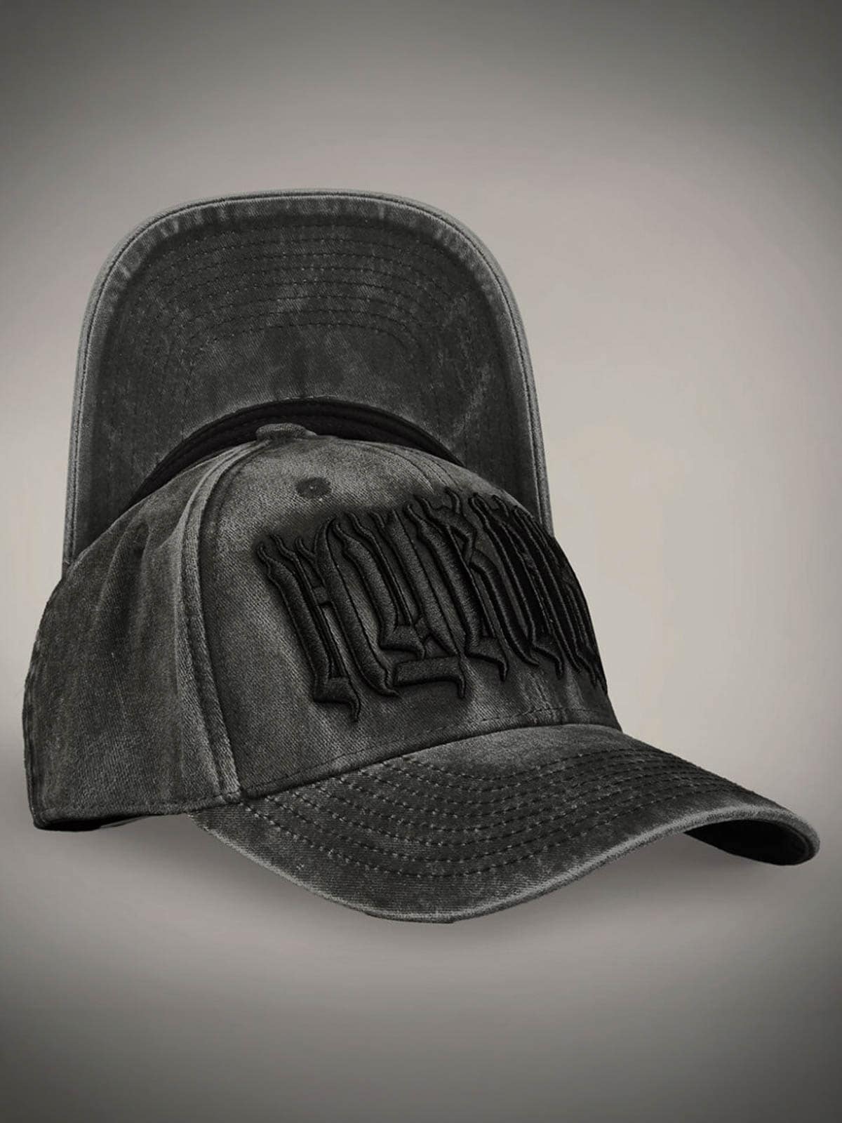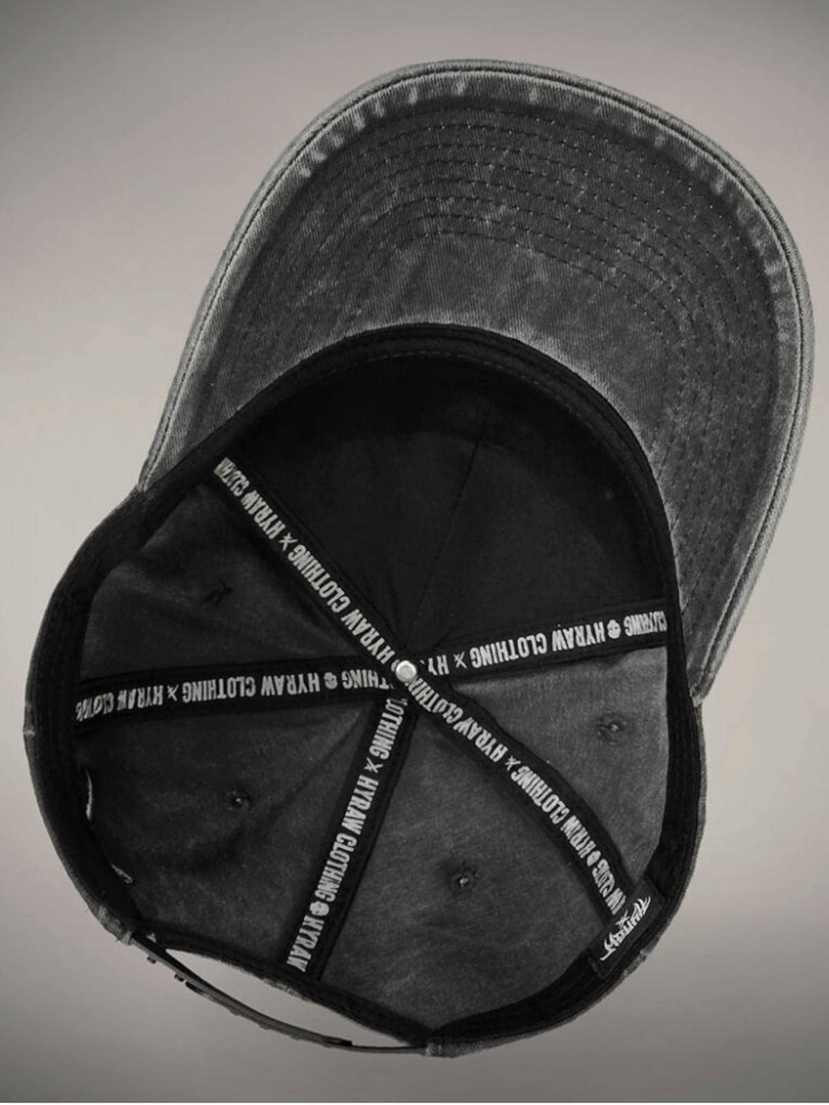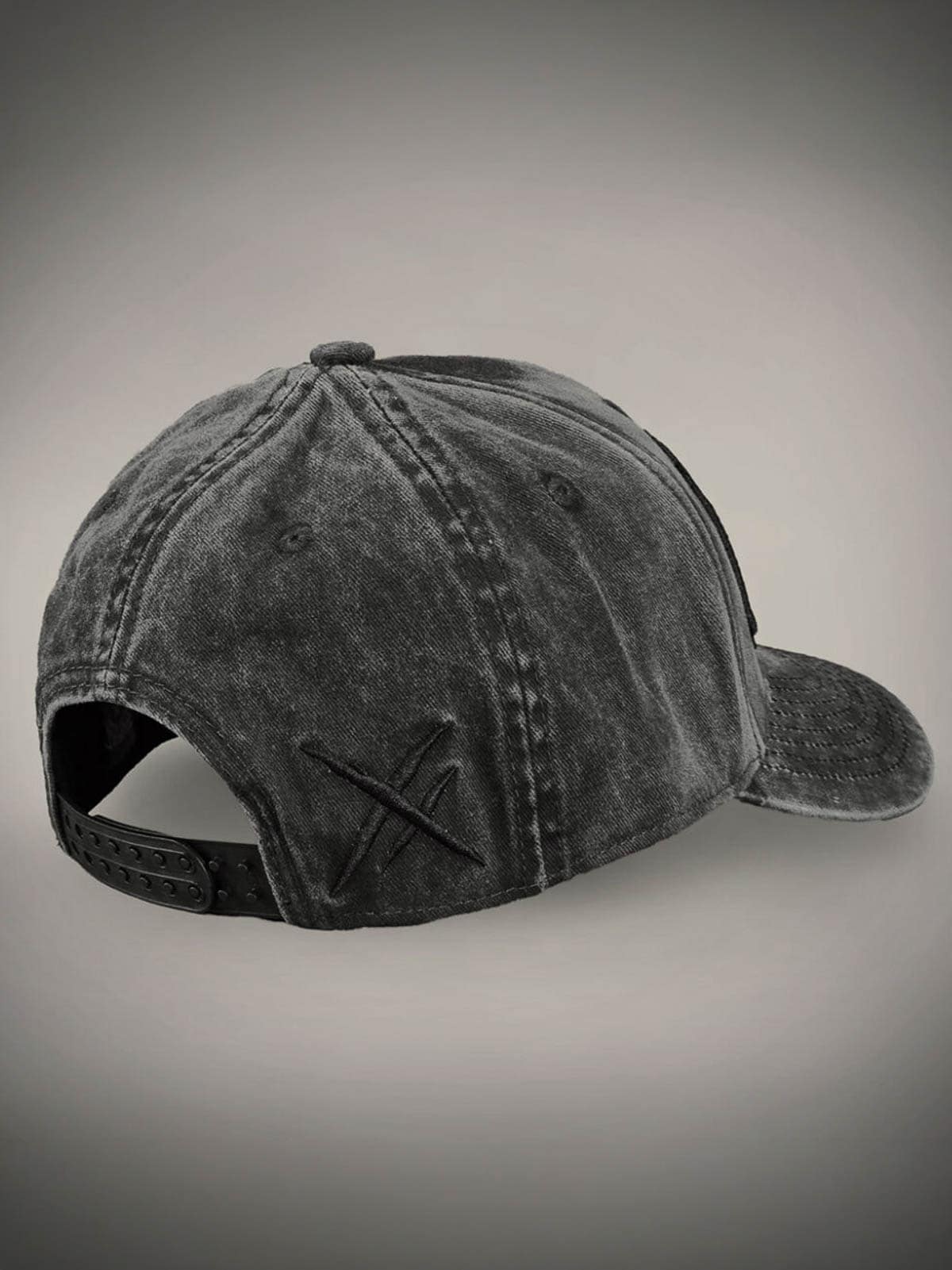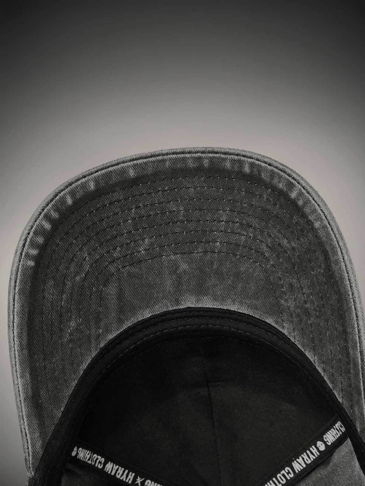 Dark grey cap designed with an embroidered logo on the front. It features a curved brim and snapback closure.