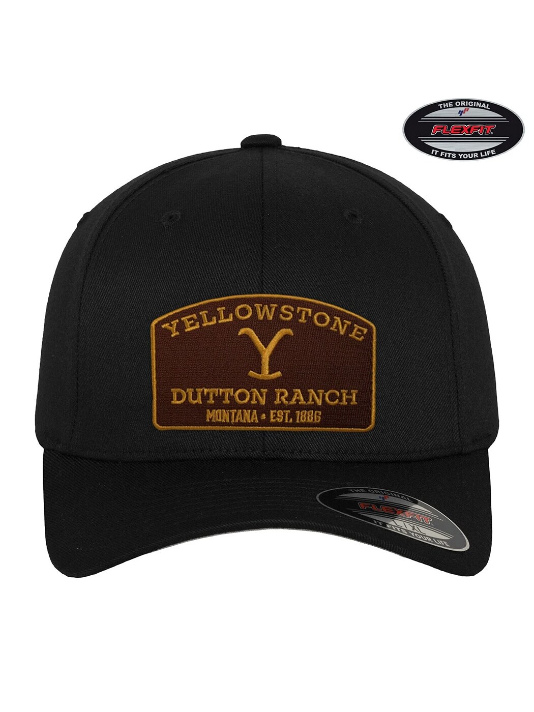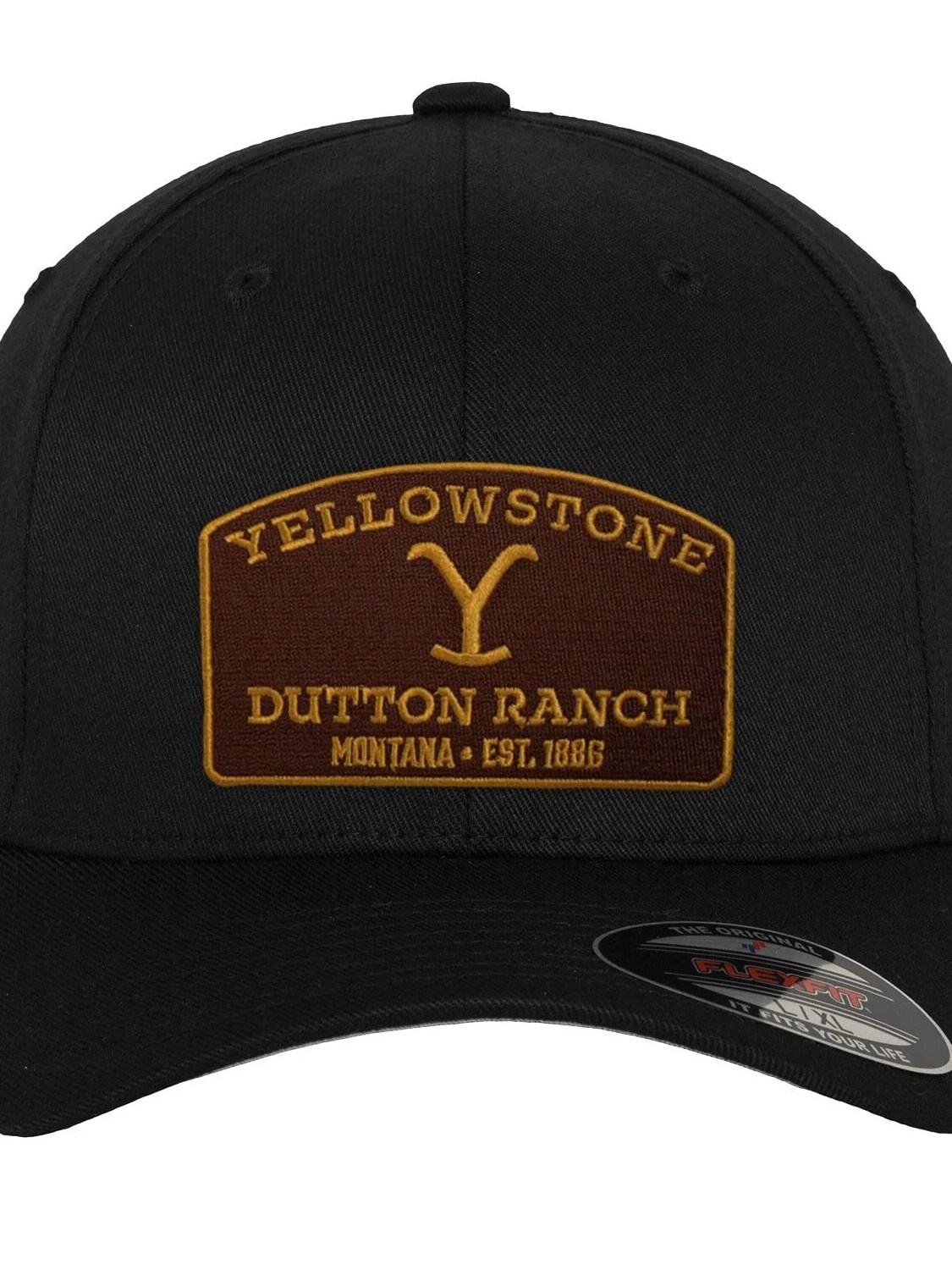 Black cap with embroidered Yellowstone Dutton Ranch logo on the front. Flexible fit that moulds comfortably to the head, offering both style and comfort. The perfect accessory for fans of the Yellowstone series and anyone who likes western style with a modern touch!