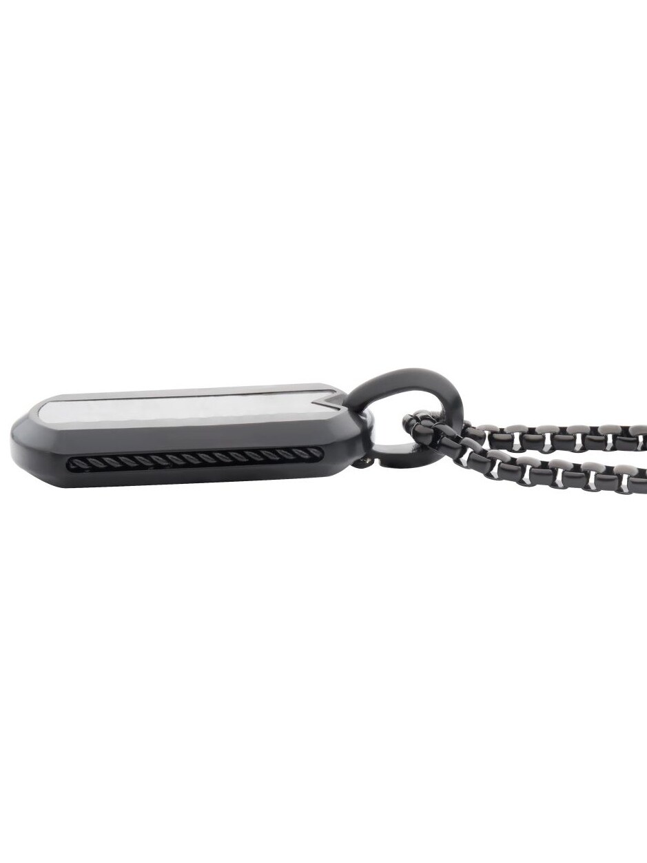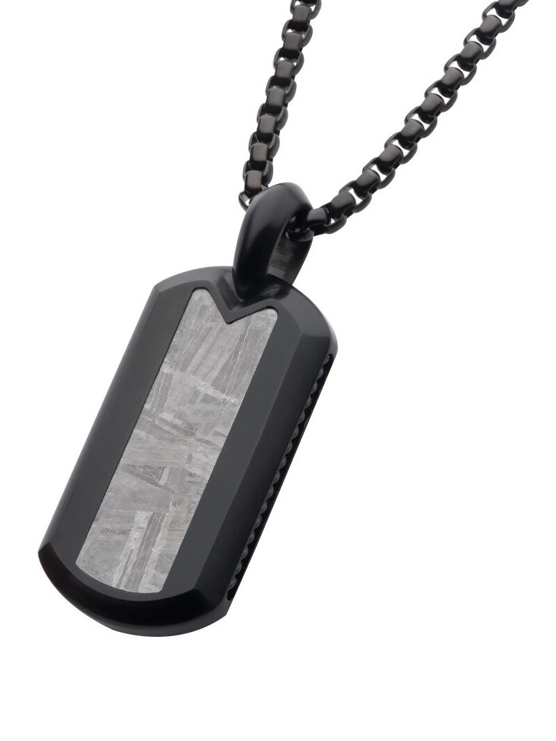 Men's Stainless Steel Meteorite Inlay Dog Tag Pendant with Black IP Box Chains. Pendant: 19mm x 35.03mm x 5.72mm