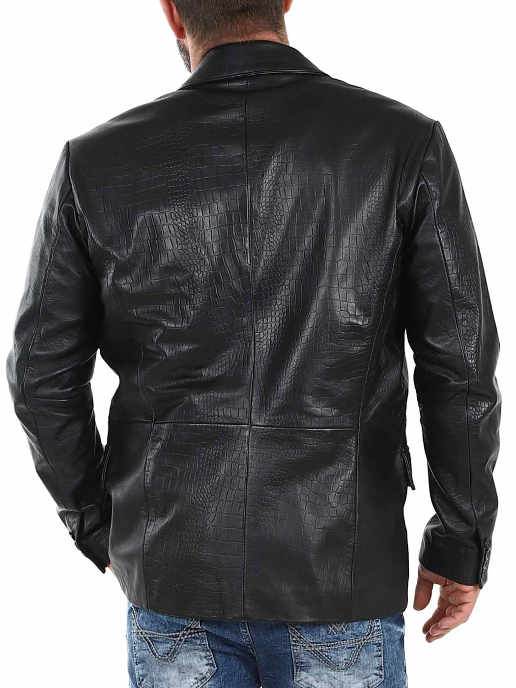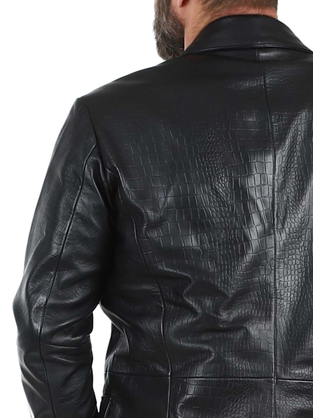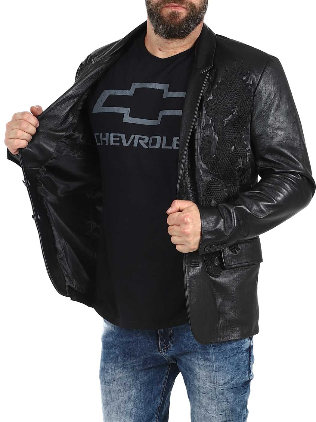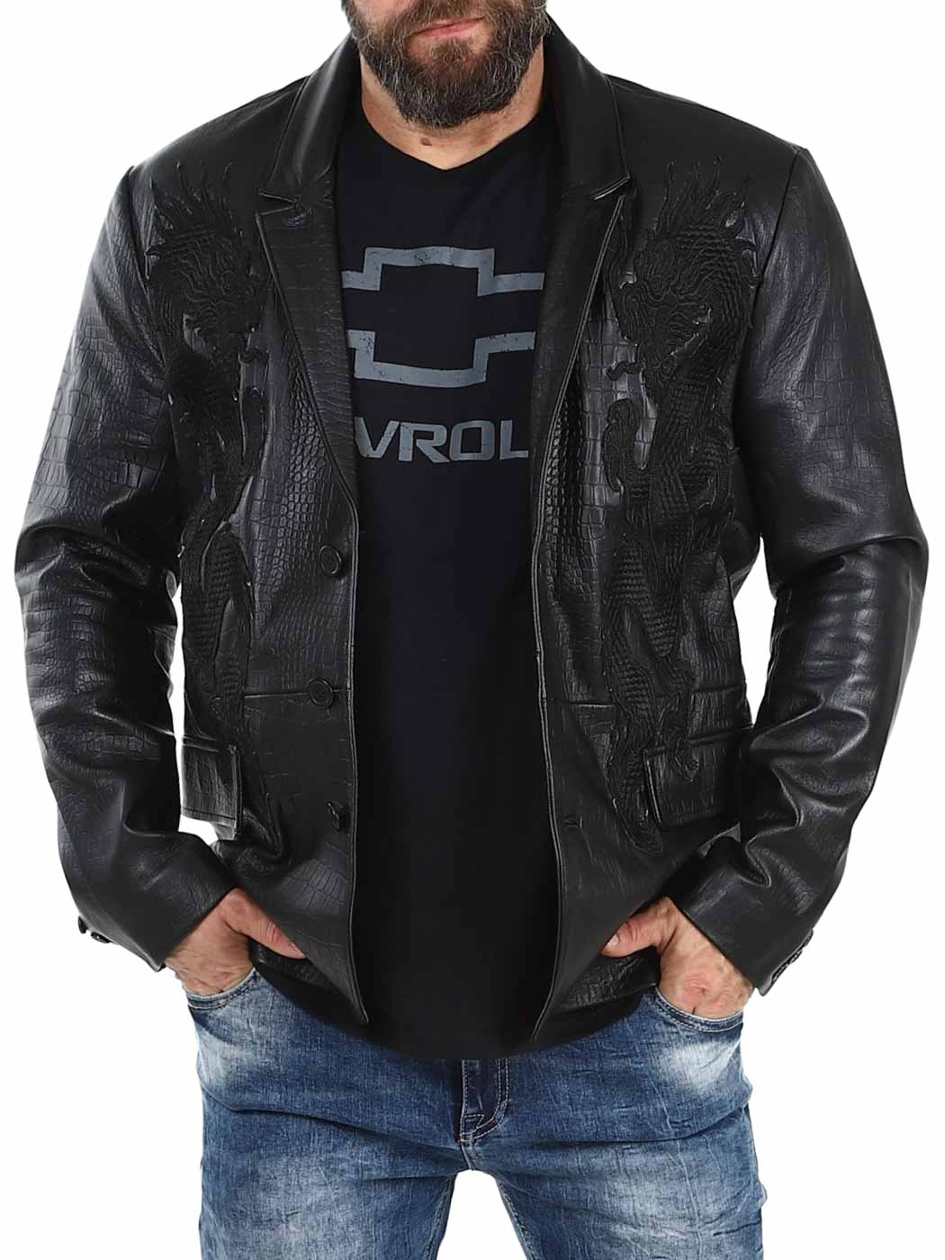 Style meets attitude in this exclusive blazer. Made of 100% genuine sheepskin with embossed reptile texture and tone-on-tone embroidered dragons on the front. Features two outer pockets, two inner pockets and button closure. Only available at Rockdenim!