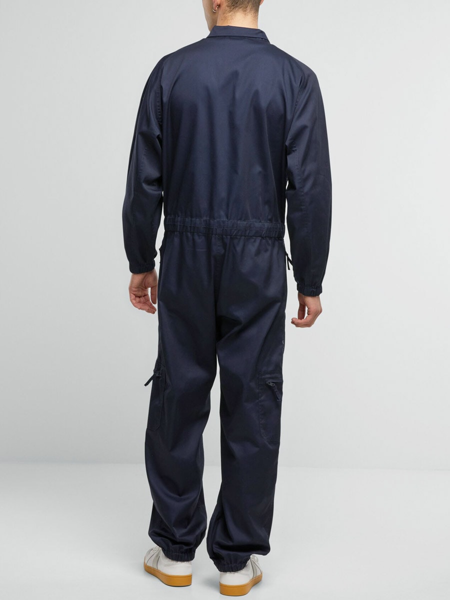 A functional overall that combines practical design with comfort. Features full-length two-way front zippers and multiple spacious pockets for storage. Elastic sections at the waist, cuffs, and leg openings. A versatile garment suitable for work, leisure activities, or outdoor use.