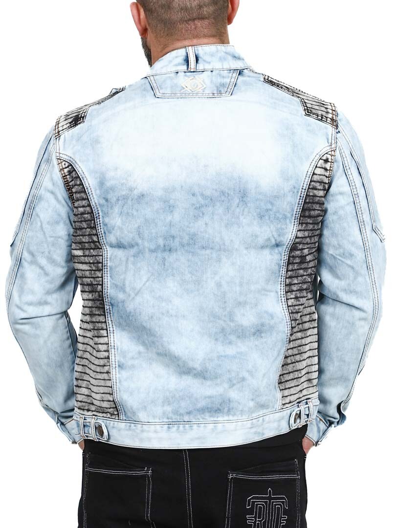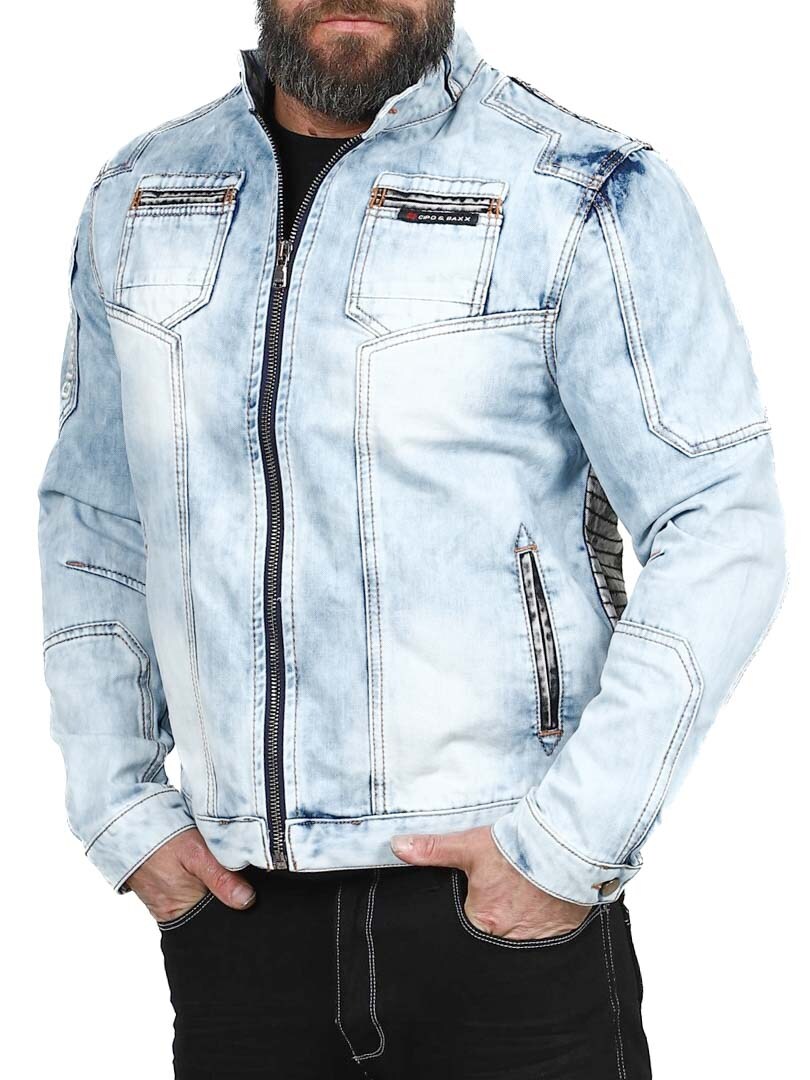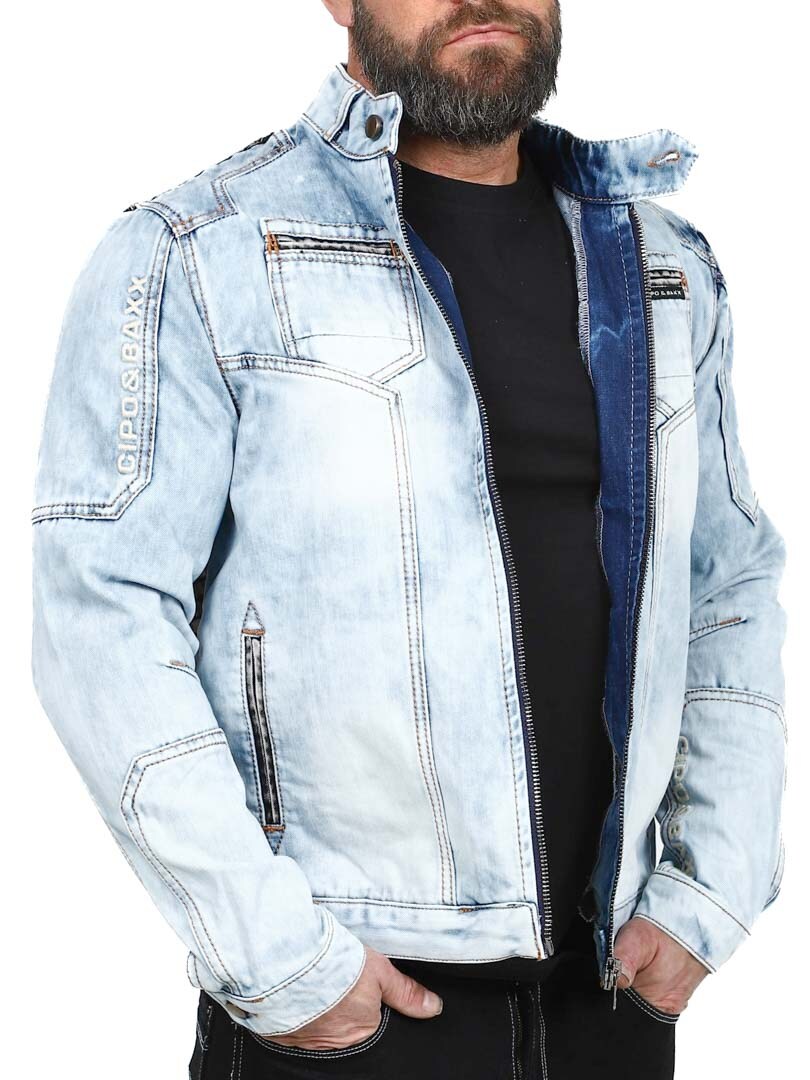 Jacket in light blue denim with a light faded effect for a modern look. It has a straight fit and is equipped with a zip closure and four front pockets. The contrast colour on the sides and the reinforced seams give the jacket a robust look!