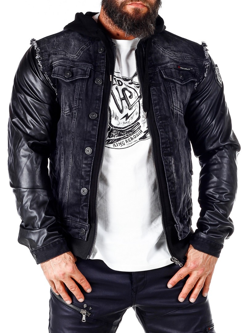 Material denim fabric: 100% Cotton, material sleeves: PU leather