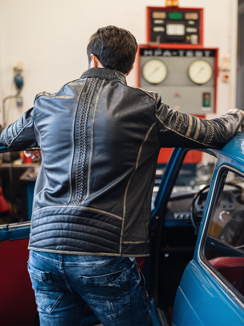 Vintage-inspired leather jacket made of genuine buffalo leather - designed and produced by RockDenim!