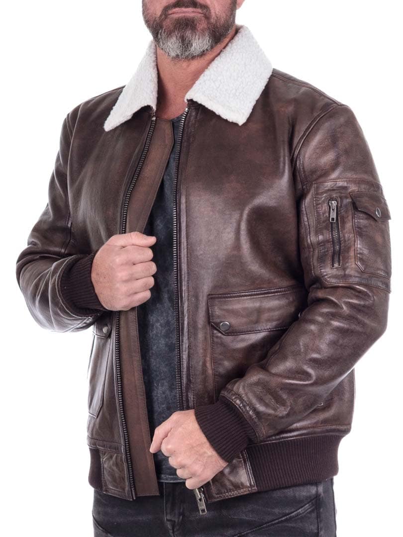 Experience the perfect balance between classic pilot style and modern comfort. Made from durable, high-quality sheepskin with a natural vintage finish that gives the jacket a distinctive character and only improves with age. The soft and warm teddy lining not only delivers an iconic pilot look but also provides extra protection when the temperature drops. The jacket features multiple zip pockets and ribbed cuffs and hem for a secure, comfortable fit. Designed for the man who wants to stay warm without compromising on style!