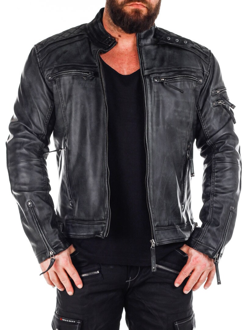 Imitation leather jacket with a worn look that gives a tough vibe. It has padded areas and adjustable cuffs and waist. Two inner pockets and four closable front pockets. This jacket is made exclusively for RockDenim and you can only find it here!