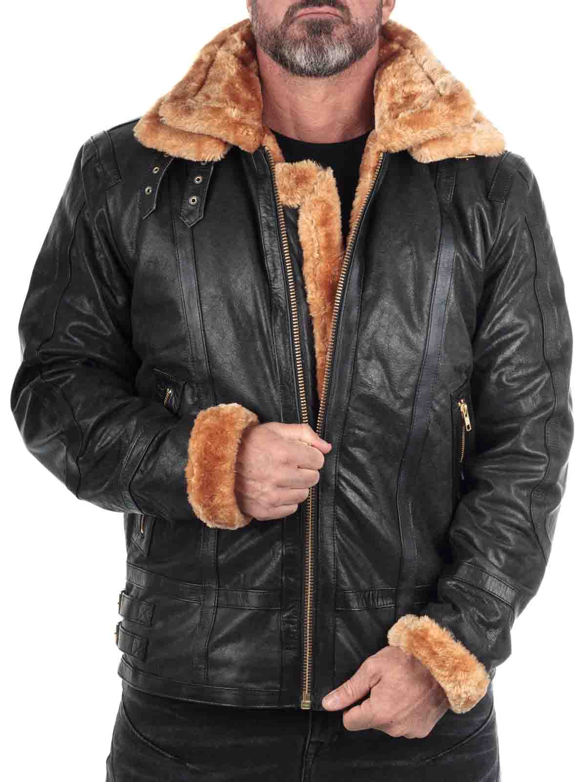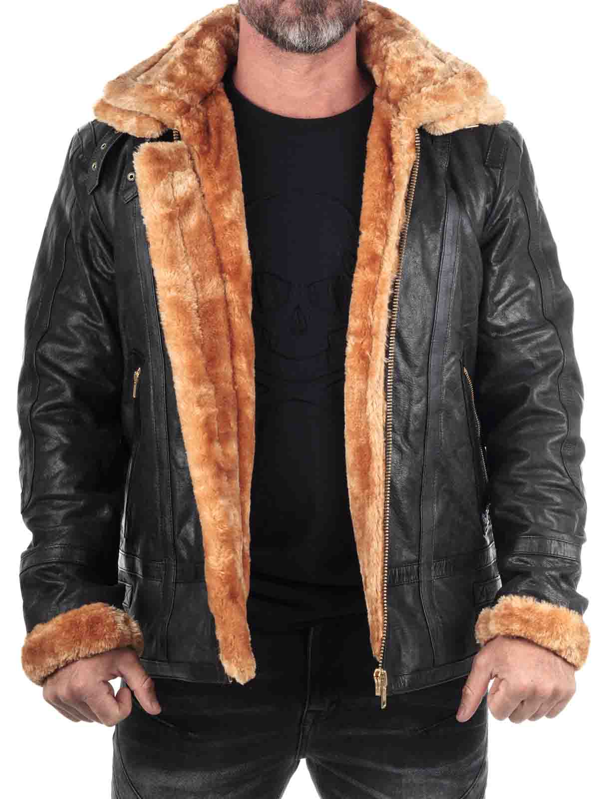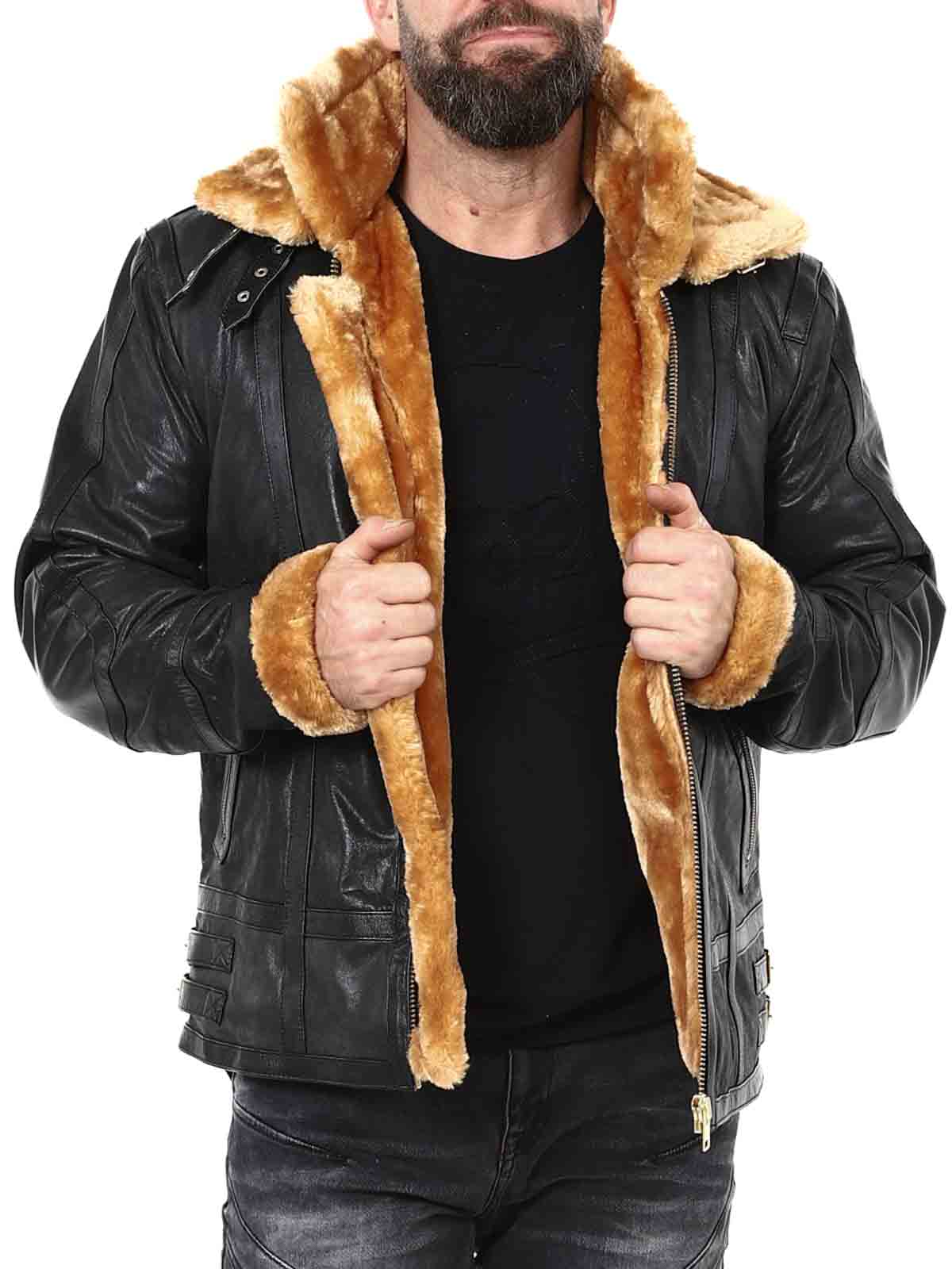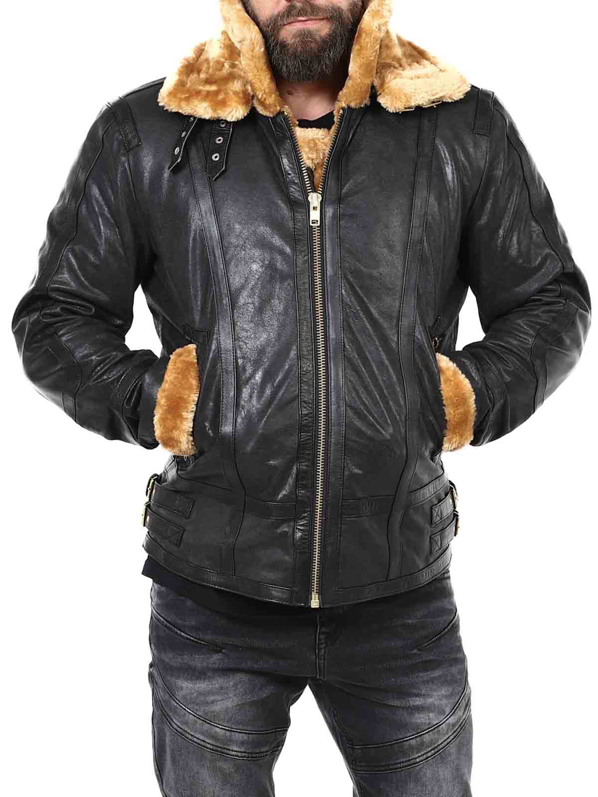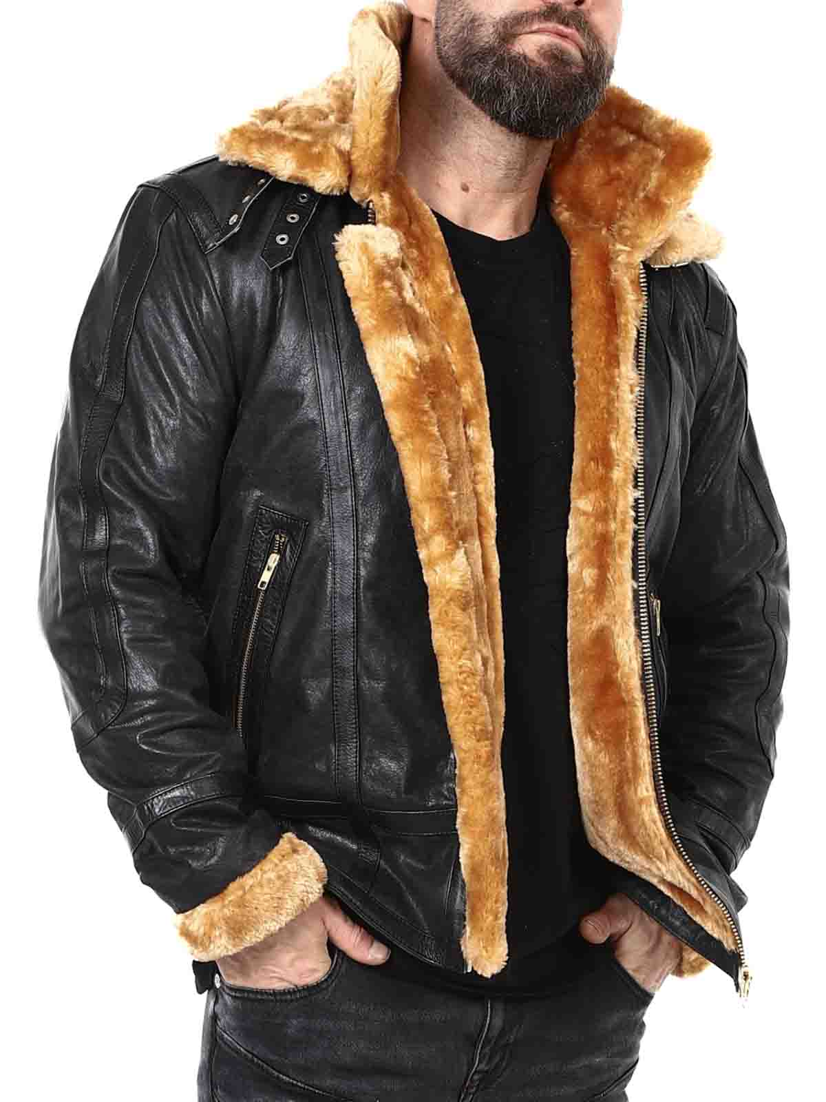 An iconic and powerful jacket made from genuine buffalo leather, created for the man who demands both style and lasting quality. The durable leather exterior is paired with soft faux fur lining throughout the inside, providing serious warmth on chilly days. It also features double fur collars — with the outer collar being removable so you can easily adapt your look to the weather and occasion. Equipped with secure pockets and adjustable buckles. A jacket with character – for those who accept nothing less than the best. Only at RockDenim!