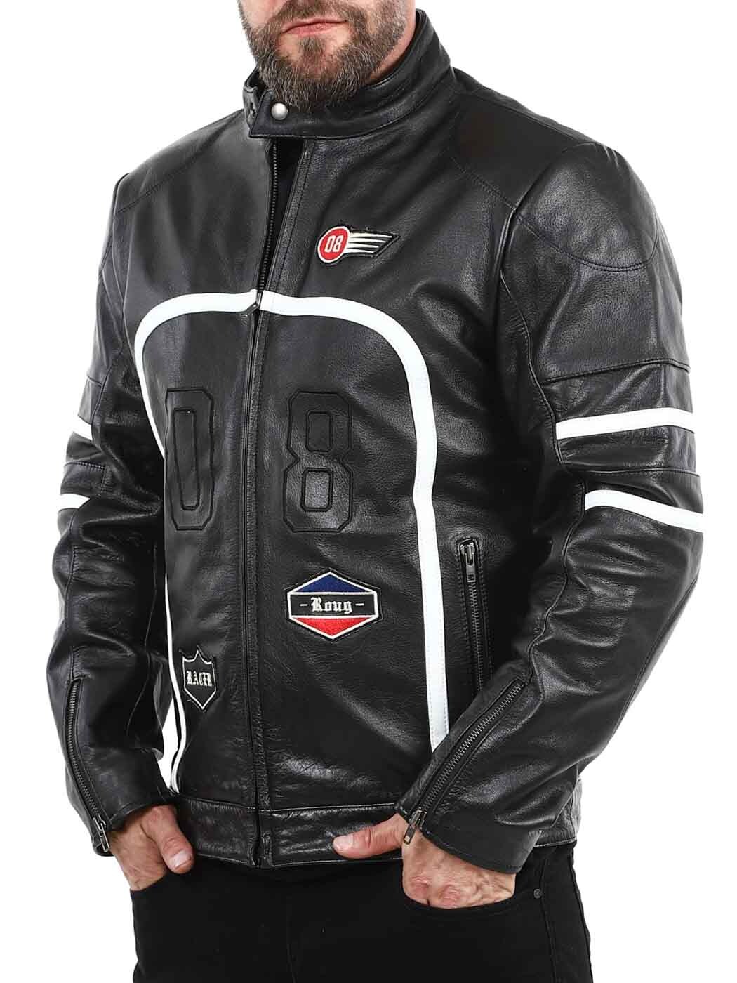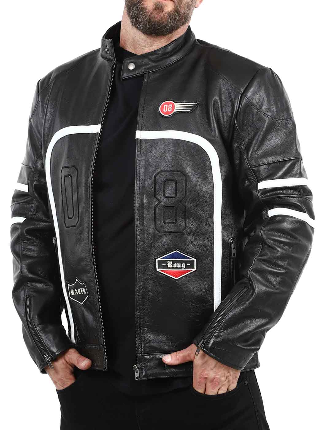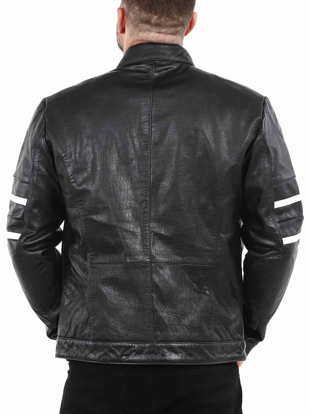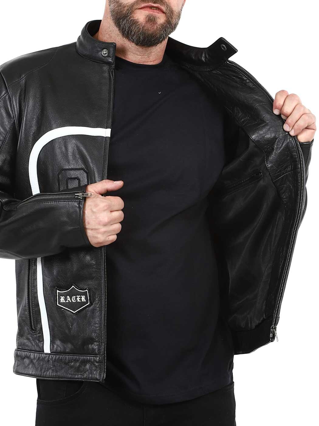 Make a powerful statement with this black biker-inspired jacket, designed to combine style with attitude. The jacket has a stand-up collar with a press stud, two closable pockets on the stomach and two inner pockets. This jacket can only be found at Rockdenim!