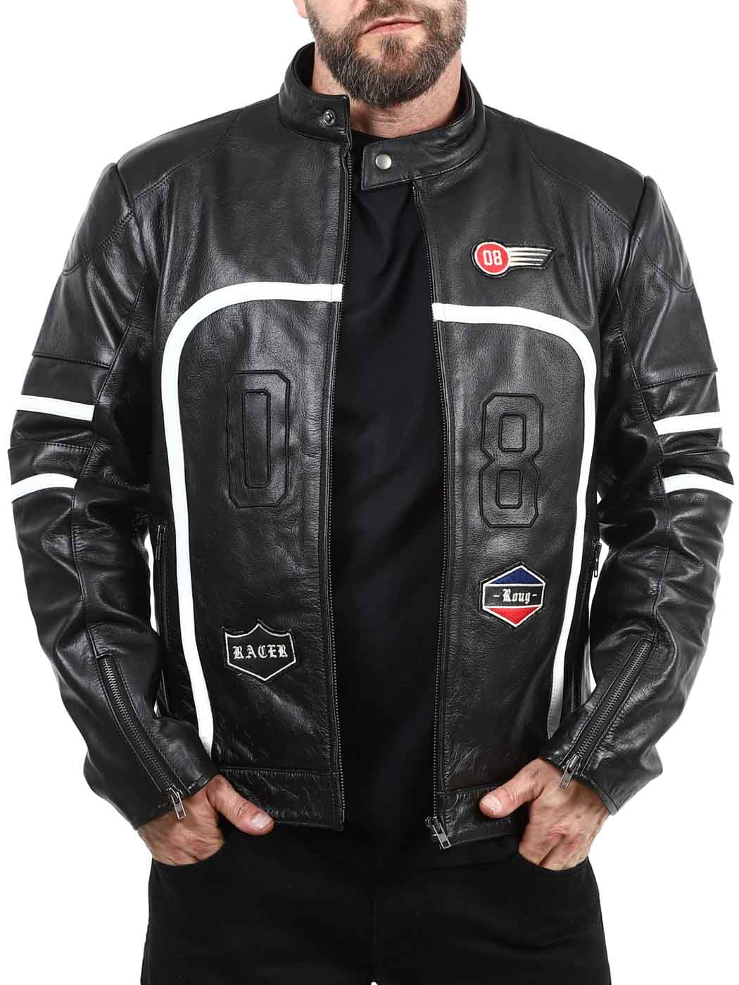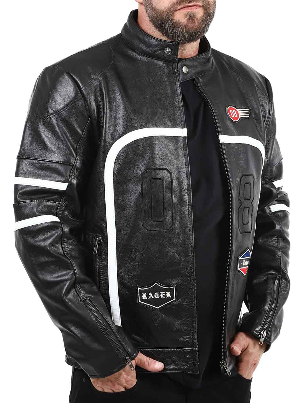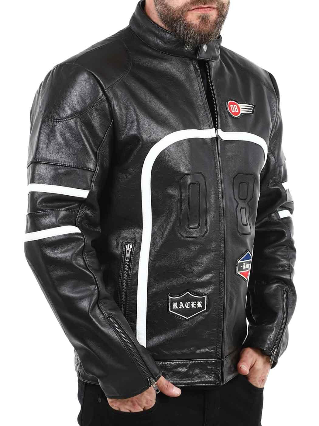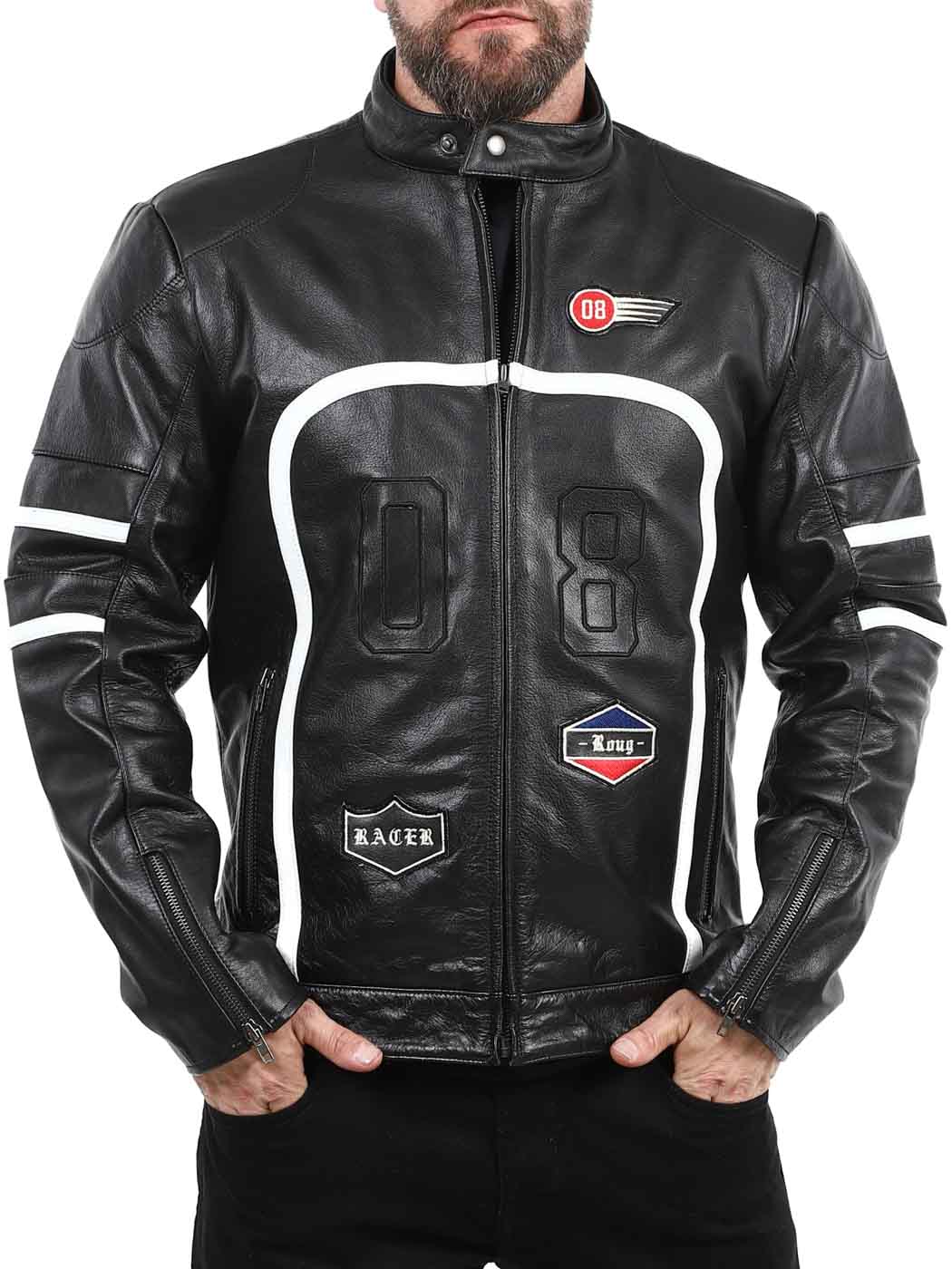 Make a powerful statement with this black biker-inspired jacket, designed to combine style with attitude. The jacket has a stand-up collar with a press stud, two closable pockets on the stomach and two inner pockets. This jacket can only be found at Rockdenim!