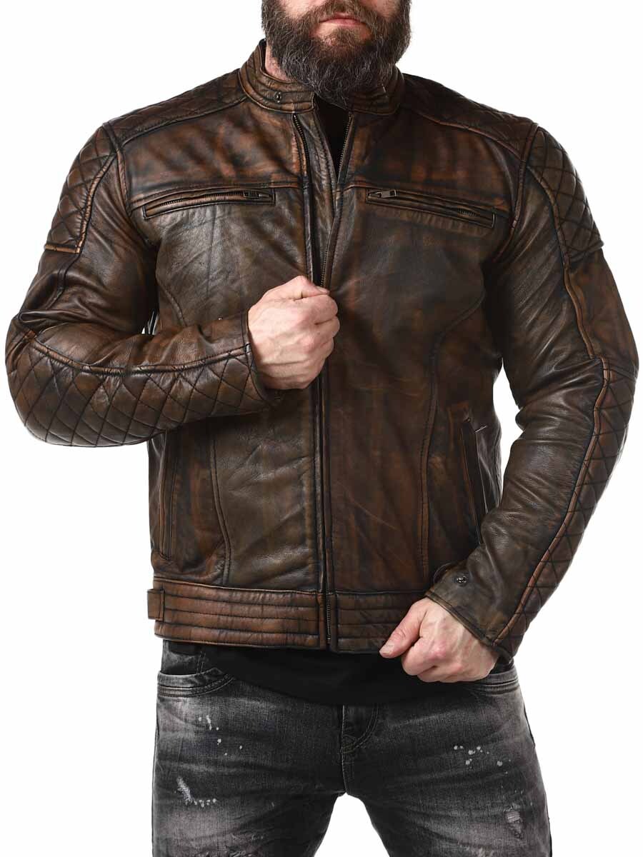 Comfortable jacket in genuine leather with adjustable waistband and cuffs. There are four closable front pockets and two inner pockets. The jacket closes with a zip and has padded sections. This jacket can only be found at RockDenim!