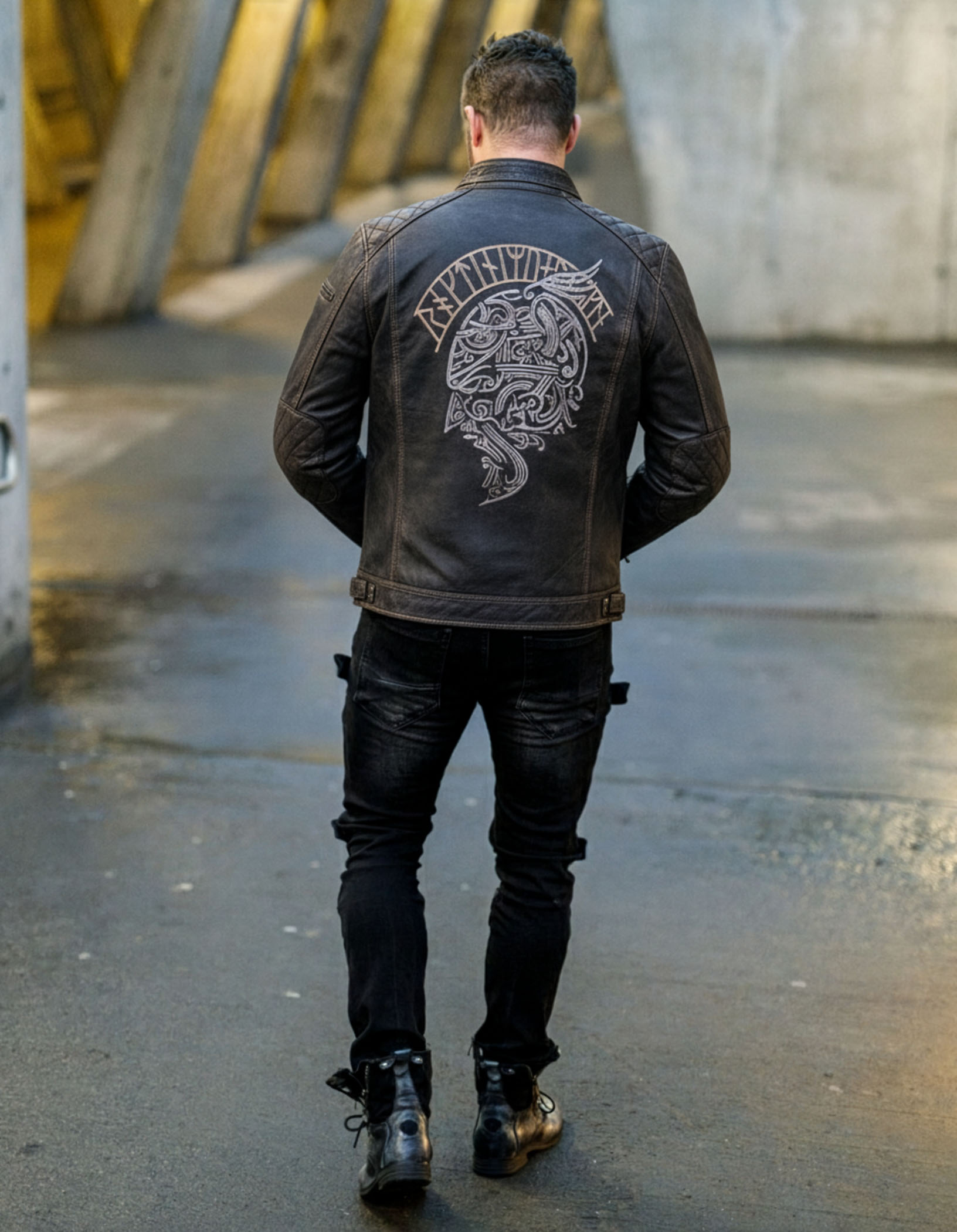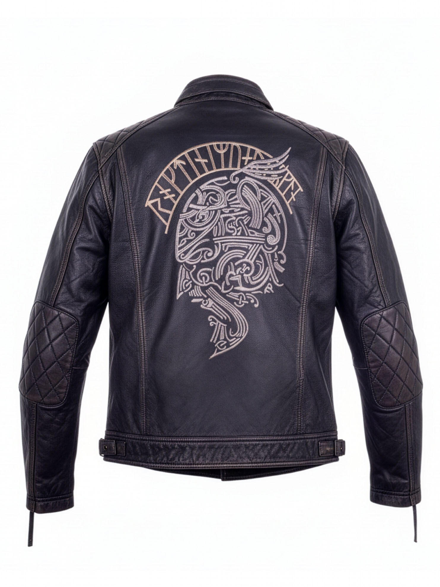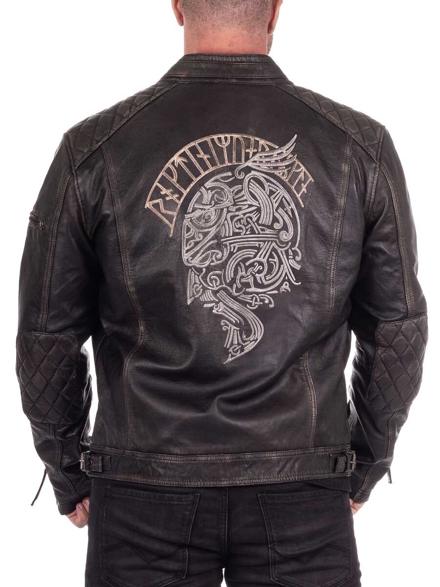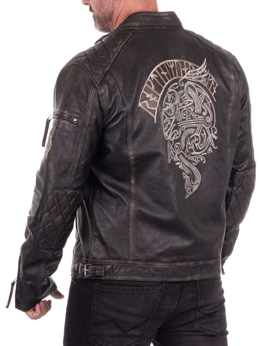 Leather Jacket with Viking-Inspired Embroidery – RD Ancestors Viking Collection