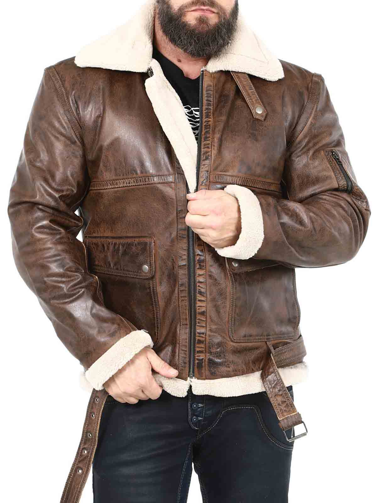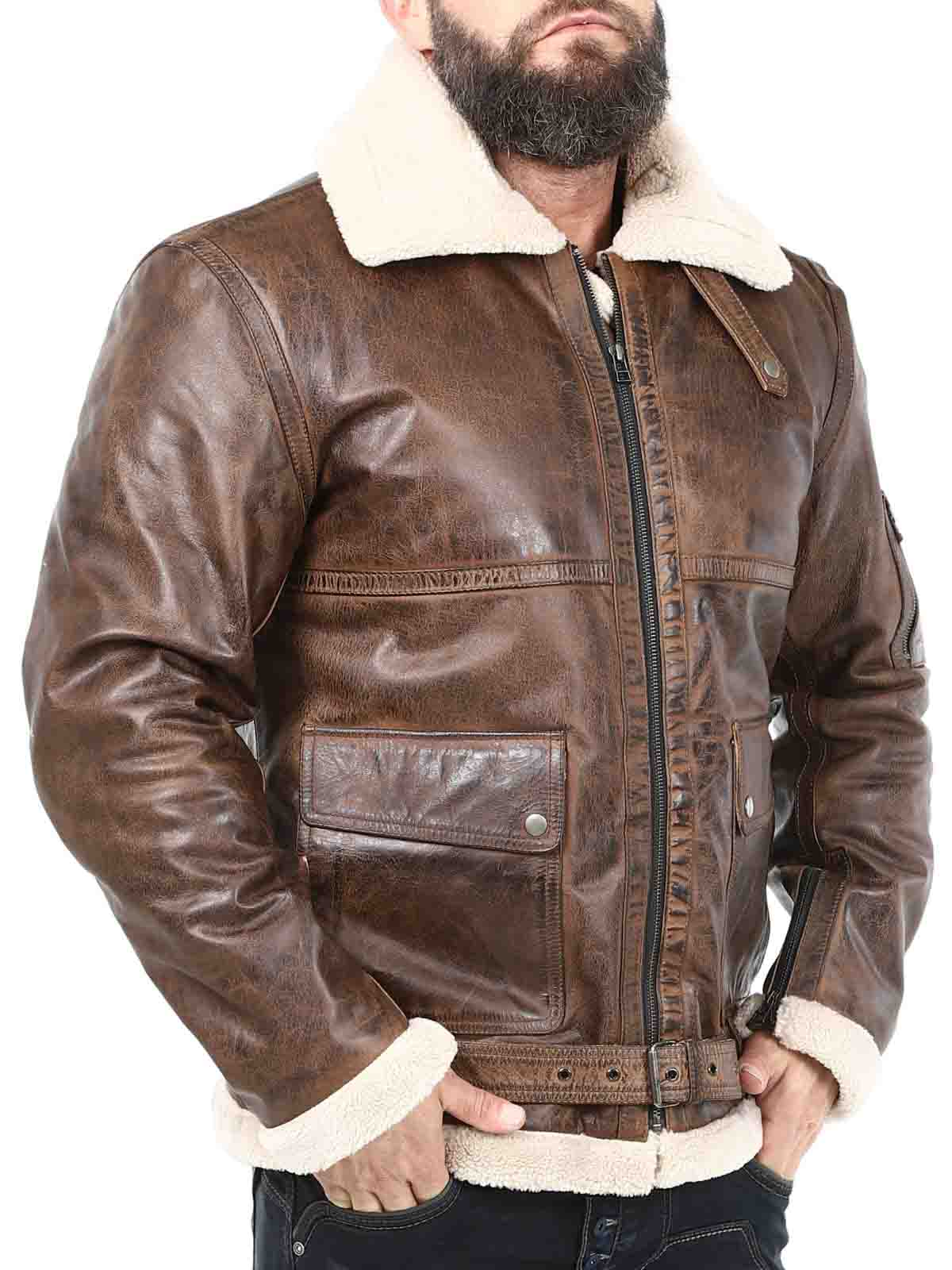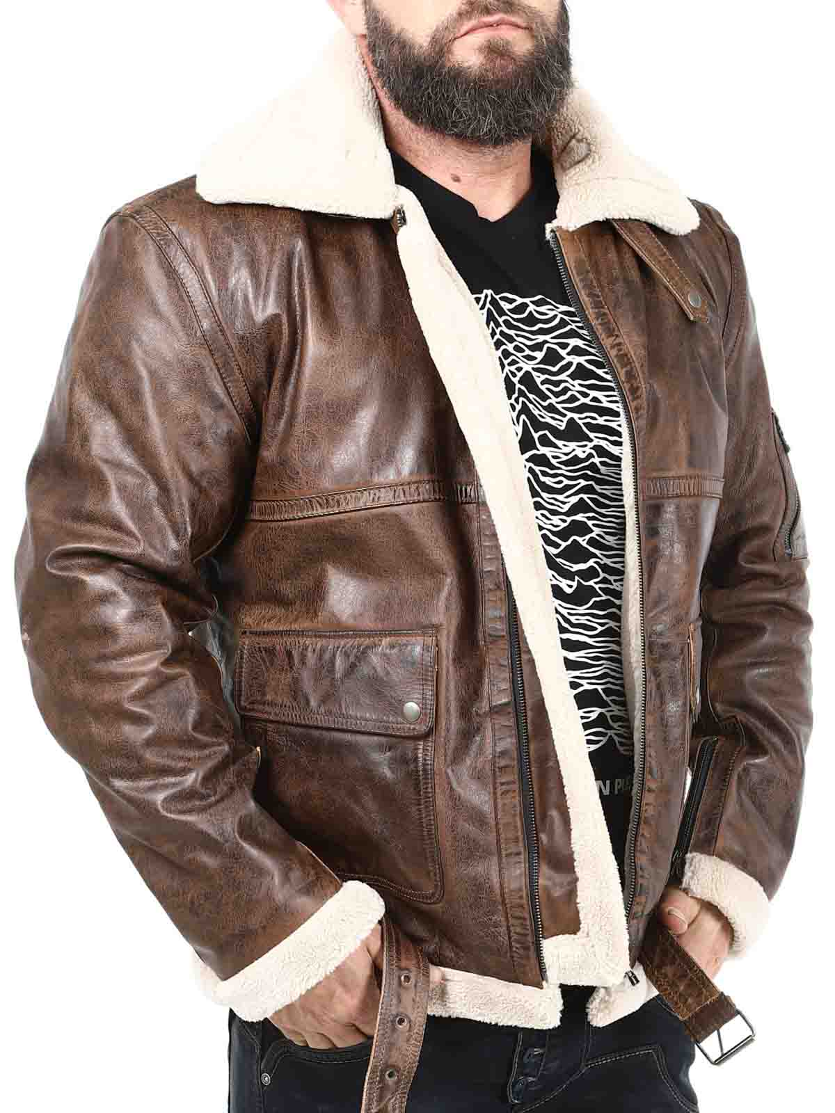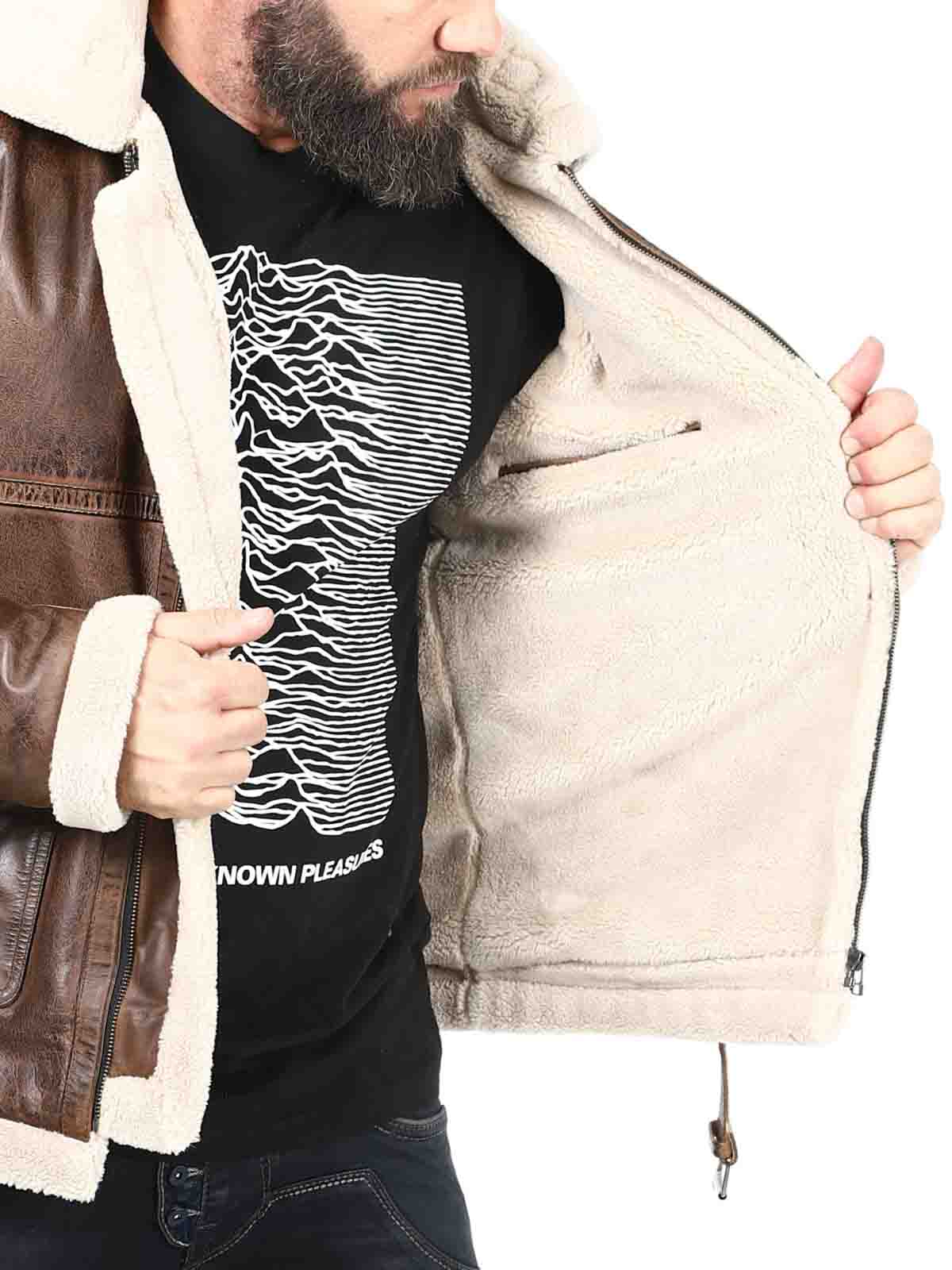 Real leather jacket with retro look. Designed with a warm teddy lining and buckles on the collar and waistband. The jacket has a zip closure, adjustable cuffs and several pockets. Perfect for those who want a unique jacket in a good quality!