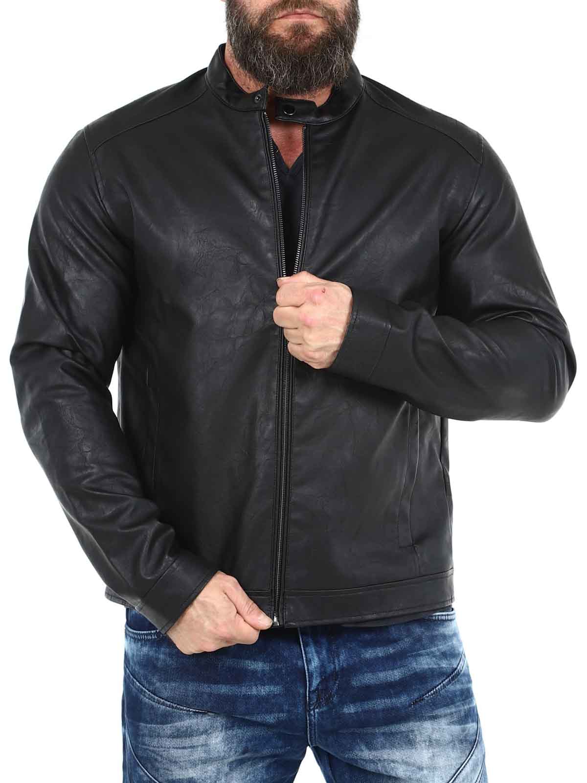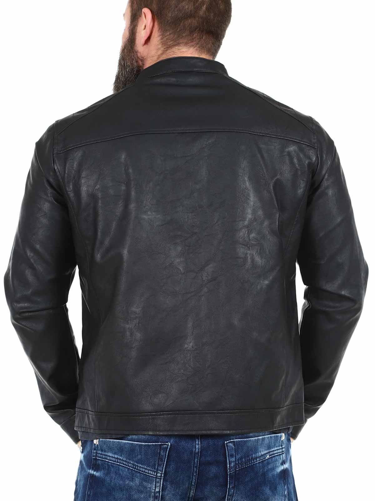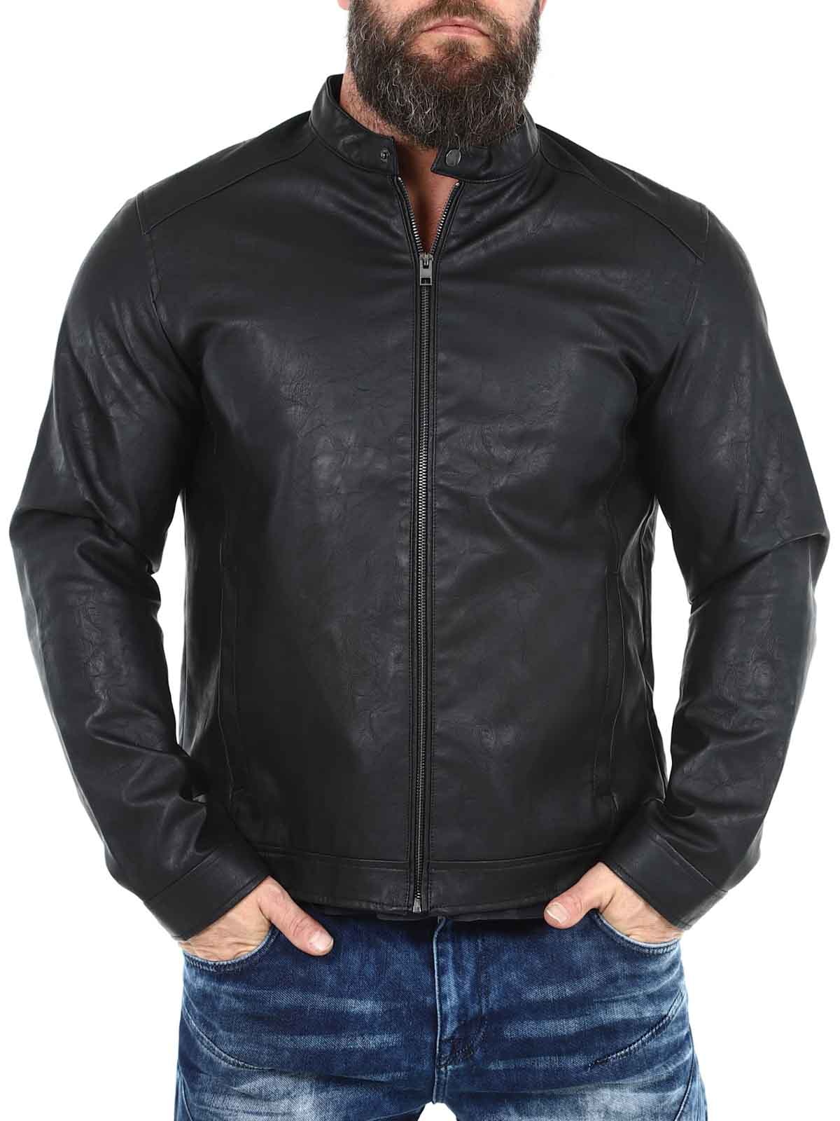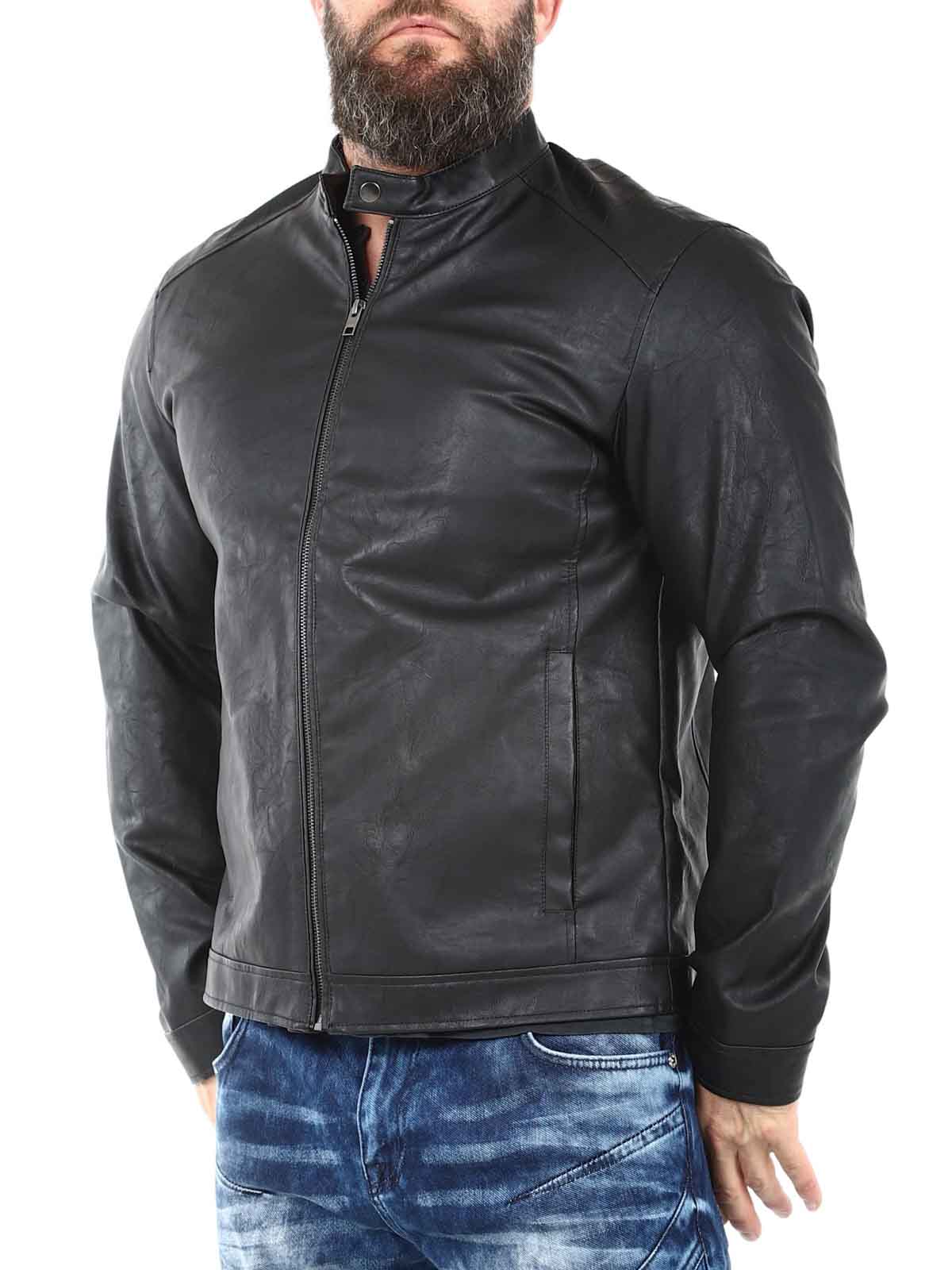 Stylish faux leather jacket perfect for a timeless look. It has a classic design with straight lines, making it easy to combine with both everyday and party wear. It features a front zip closure and two side pockets for convenient storage. Polyurethane is a durable, synthetic alternative to leather. It is lightweight and easy to care for.