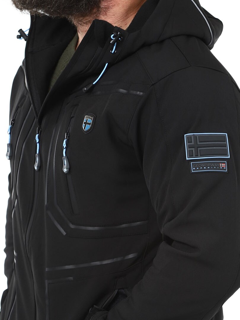Windproof and water-repellent jacket that is perfect to wear in spring/summer/autumn. It has a fleece lining, taped seams and a hood with drawstring. Designed with patches, reflective details and text print in contrasting colors. There are four front pockets with zippers.