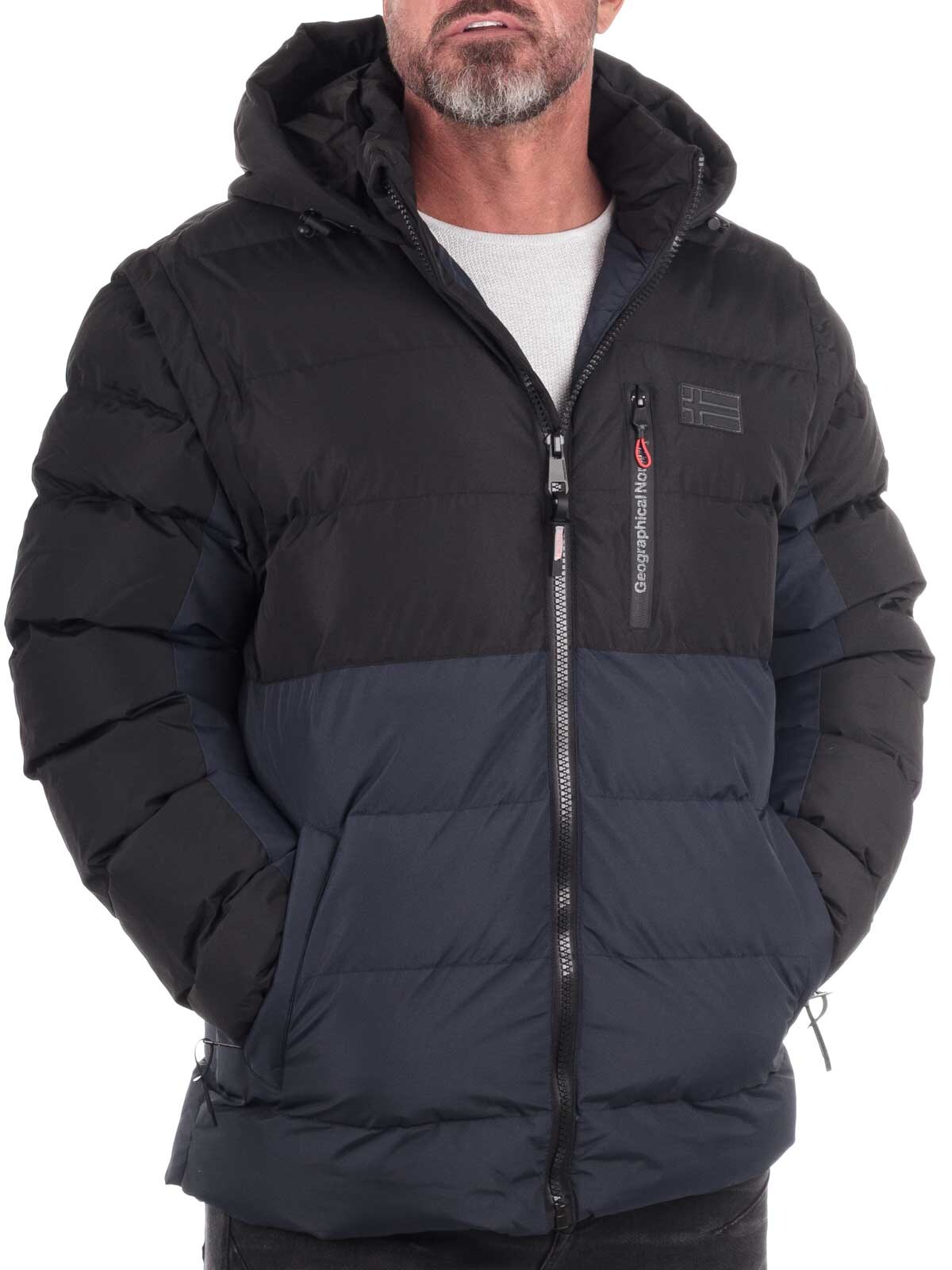 Sleek puffer jacket in a two-tone design with a matte finish. The sleeves can be easily detached, turning the jacket into a vest – perfect for changing weather and seasons. Made from durable material with thick padding that keeps you warm without feeling bulky. Multiple zip pockets and an adjustable hood add both function and attitude. A versatile favorite combining comfort, style, and flexibility.