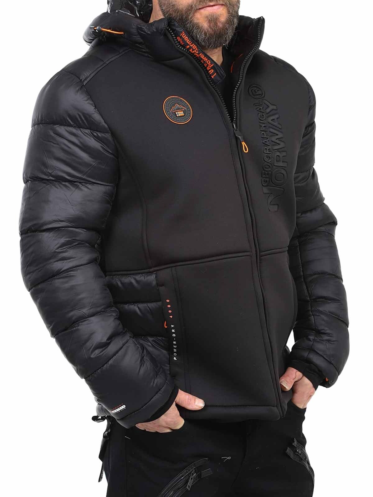 Jacket with padded back and sleeves for warmth, while the front is made from softshell material for extra mobility and protection from the elements. Features an adjustable hood, zip pockets and stylish details such as logo embroidery and patches. Perfect for everyday wear or outdoor activities on cold days!