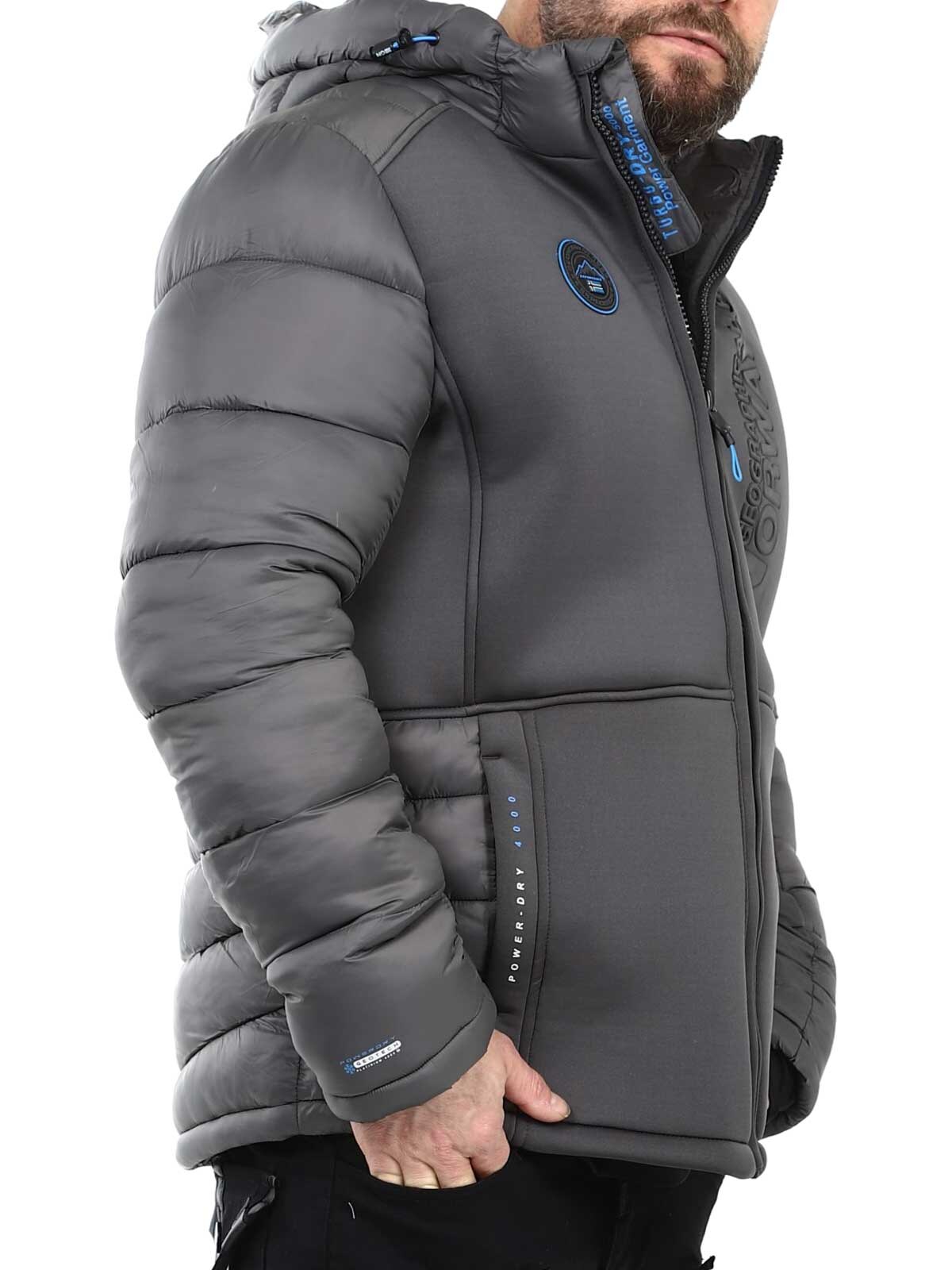 Jacket with padded back and sleeves for warmth, while the front is made from softshell material for extra mobility and protection from the elements. Features an adjustable hood, zip pockets and stylish details such as logo embroidery and patches. Perfect for everyday wear or outdoor activities on cold days!