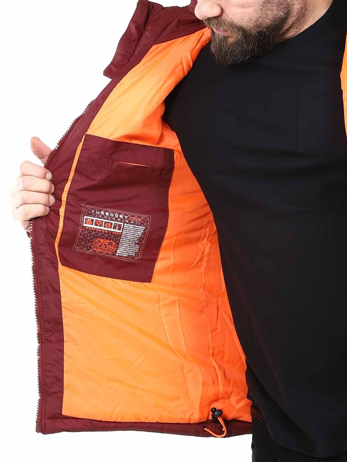 Insulated jacket that is wind- and water-resistant. It has four front pockets with zippers, and two open inner pockets. Drawstrings in the hood and at the bottom.