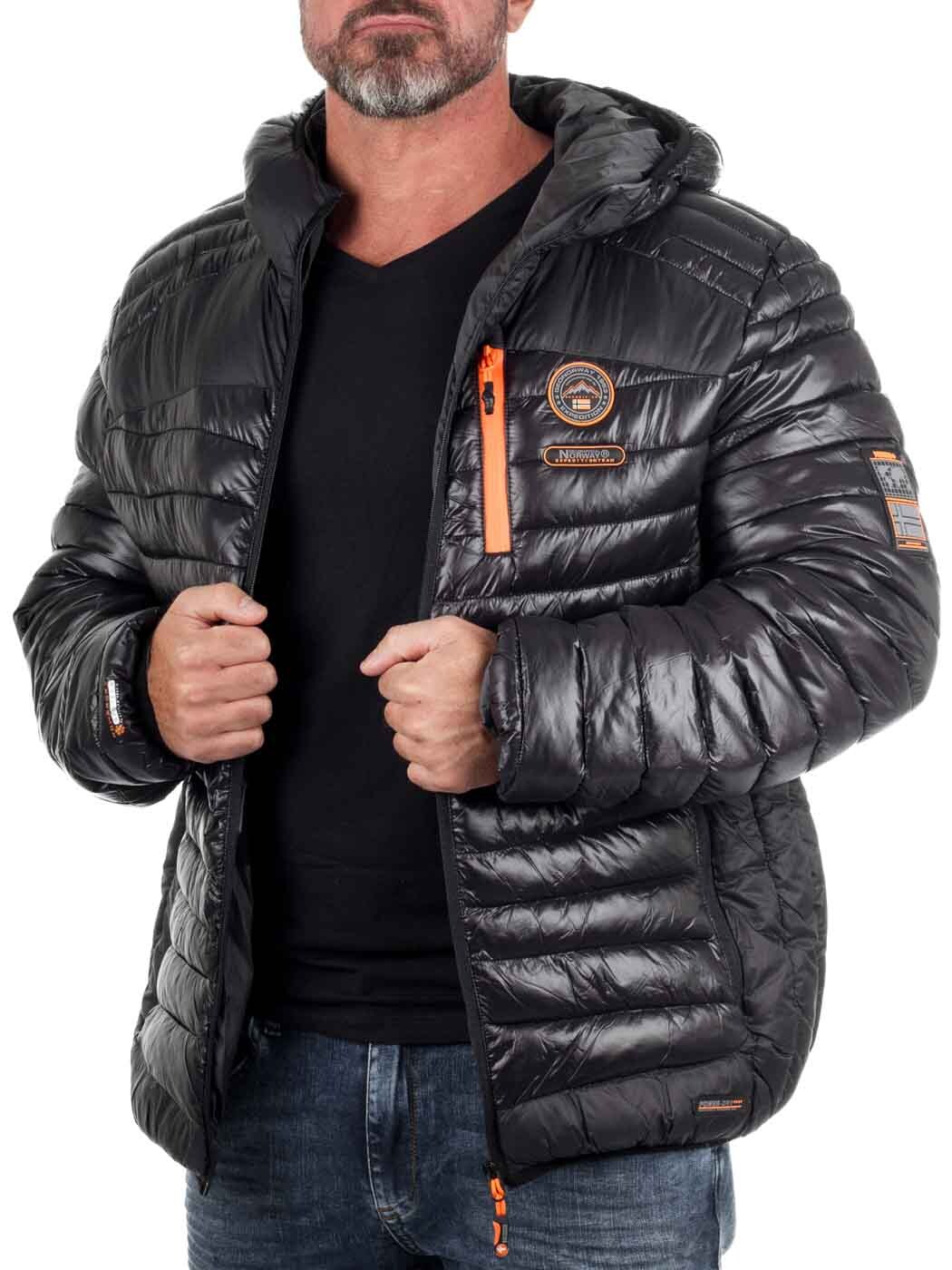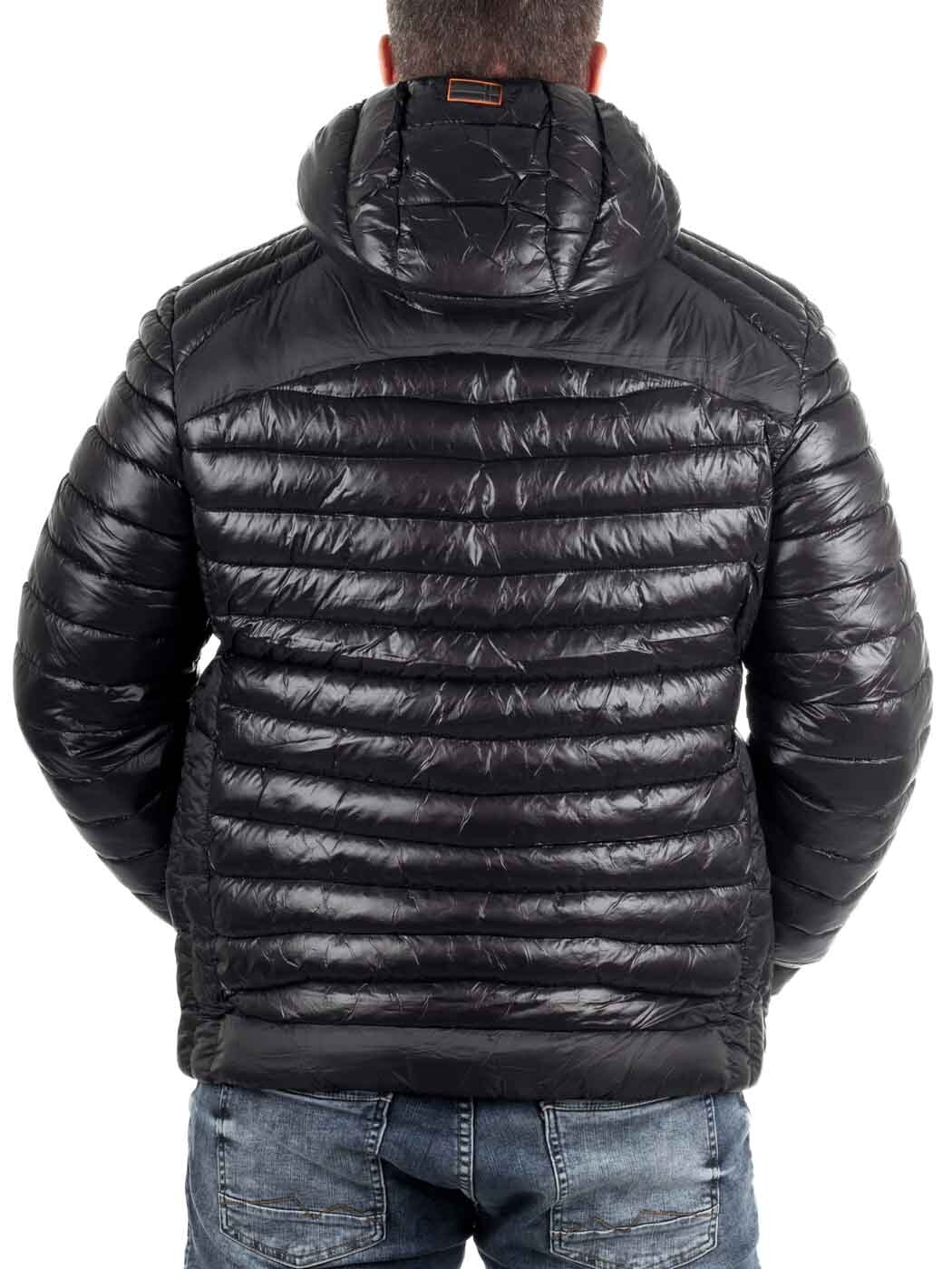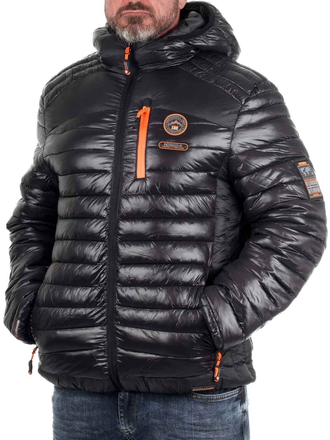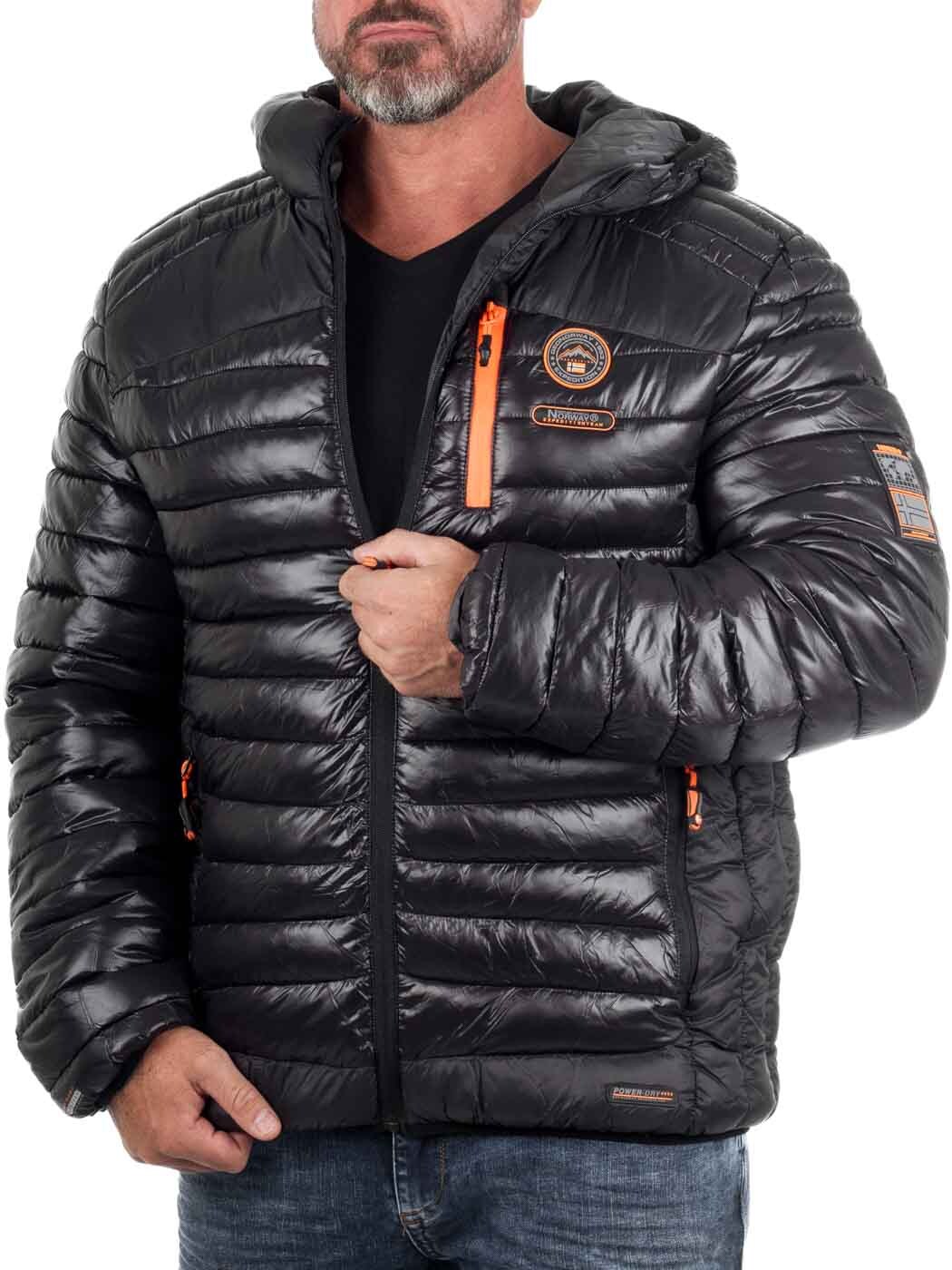 Stylish lightweight jacket with a glossy finish and contrasting orange details. Lightly padded for effective warmth without feeling heavy. Designed with multiple practical pockets, a hood, and subtle logo patches for a modern look. Perfect for transitional seasons or as an insulating layer on colder days.