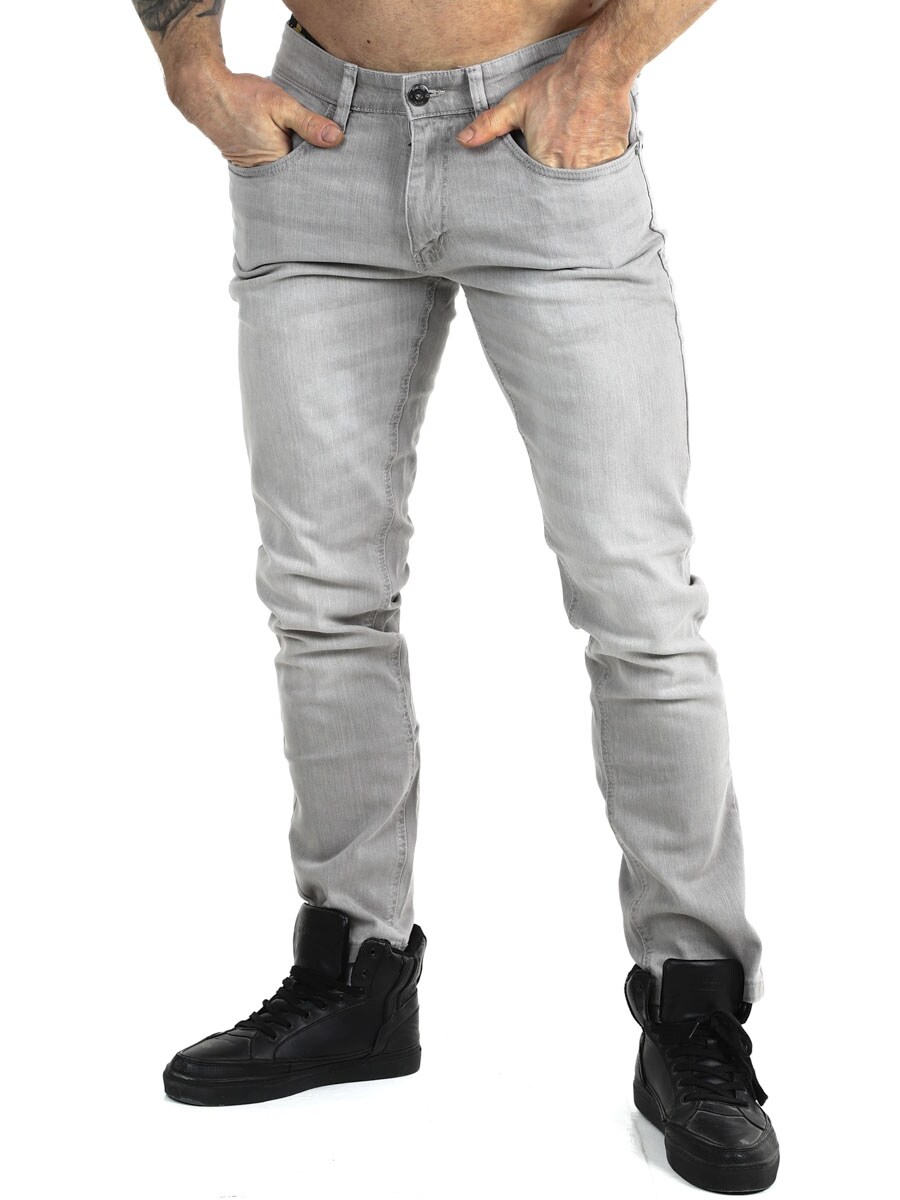 Solid color jeans with five pockets and tapered legs in a comfortable material with nice stretch.