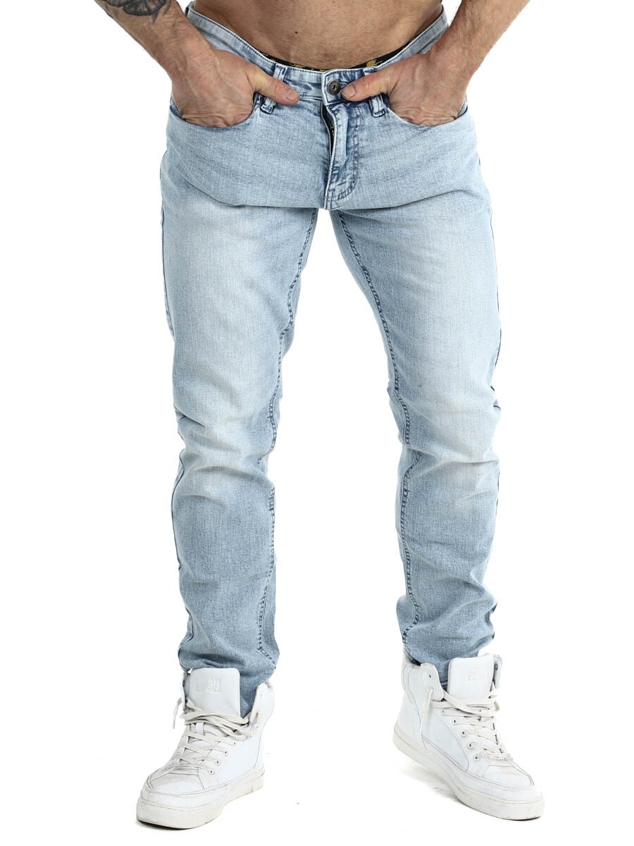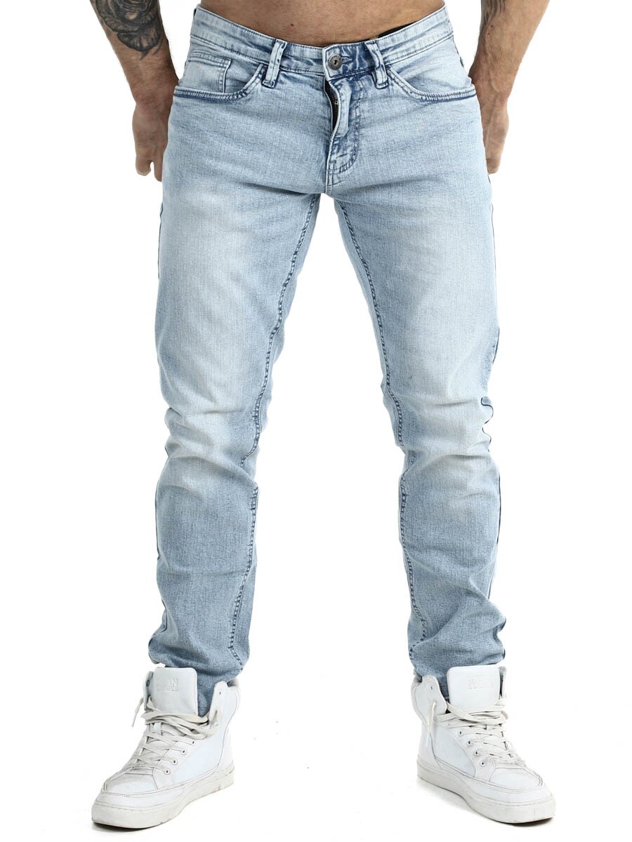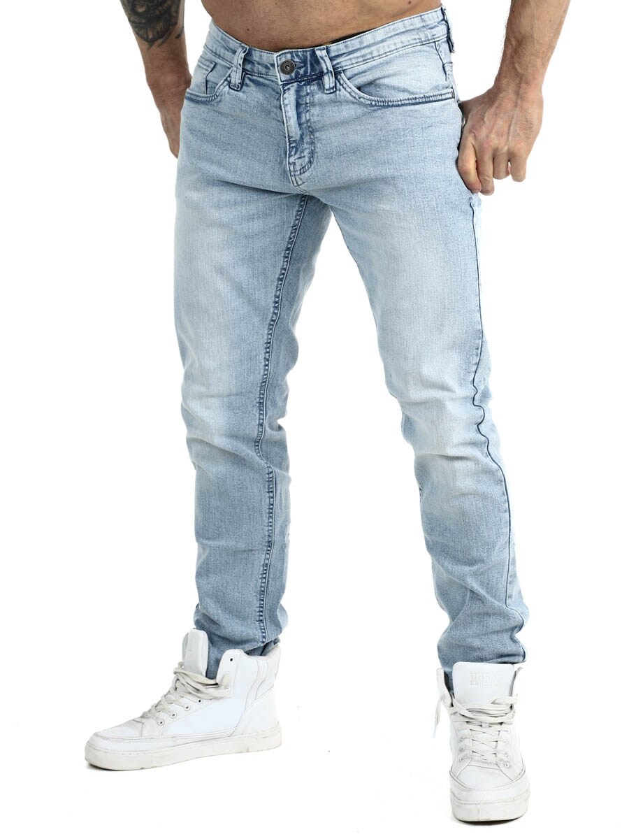 Solid color jeans with five pockets and tapered legs in a comfortable material with nice stretch.