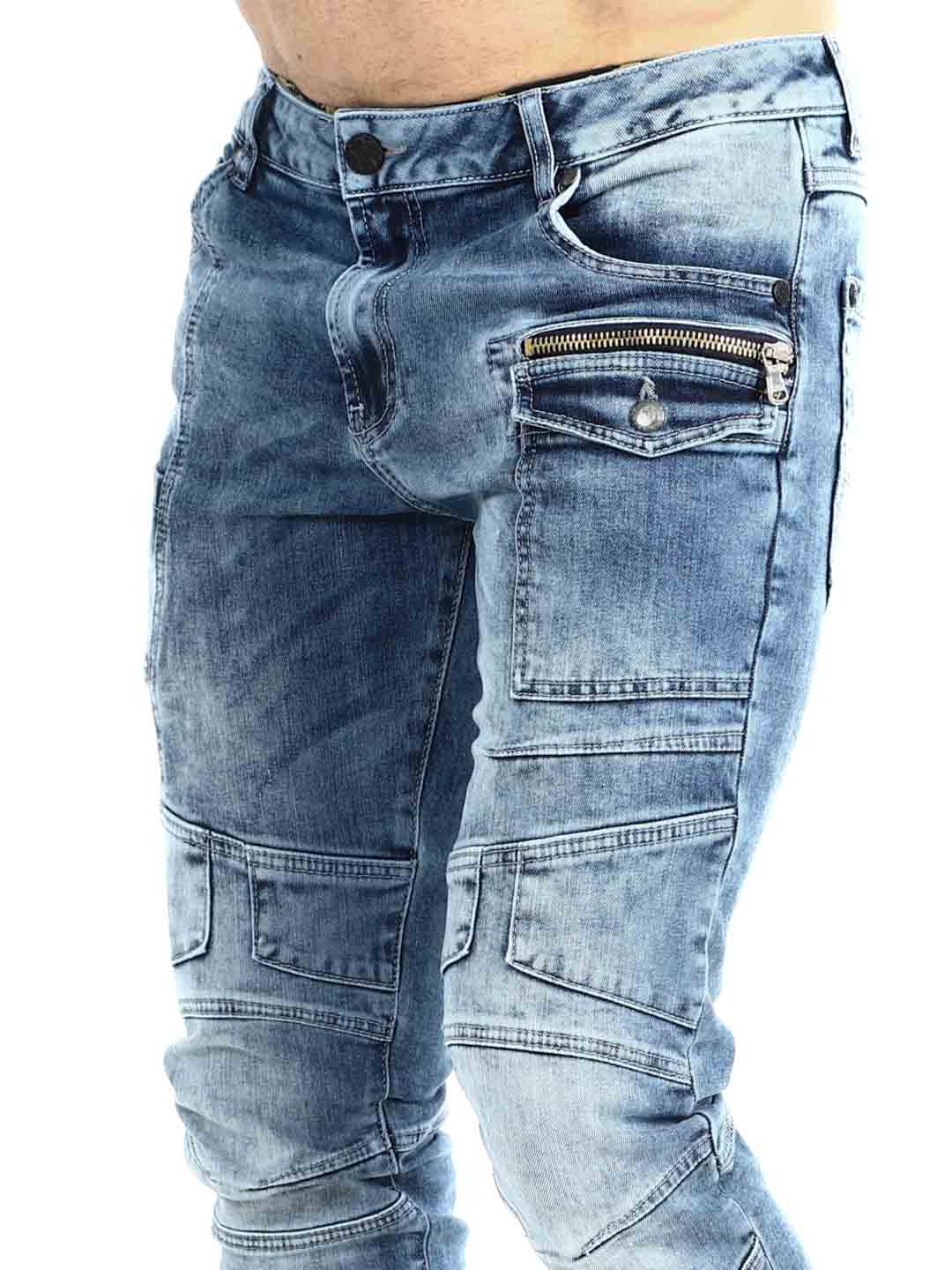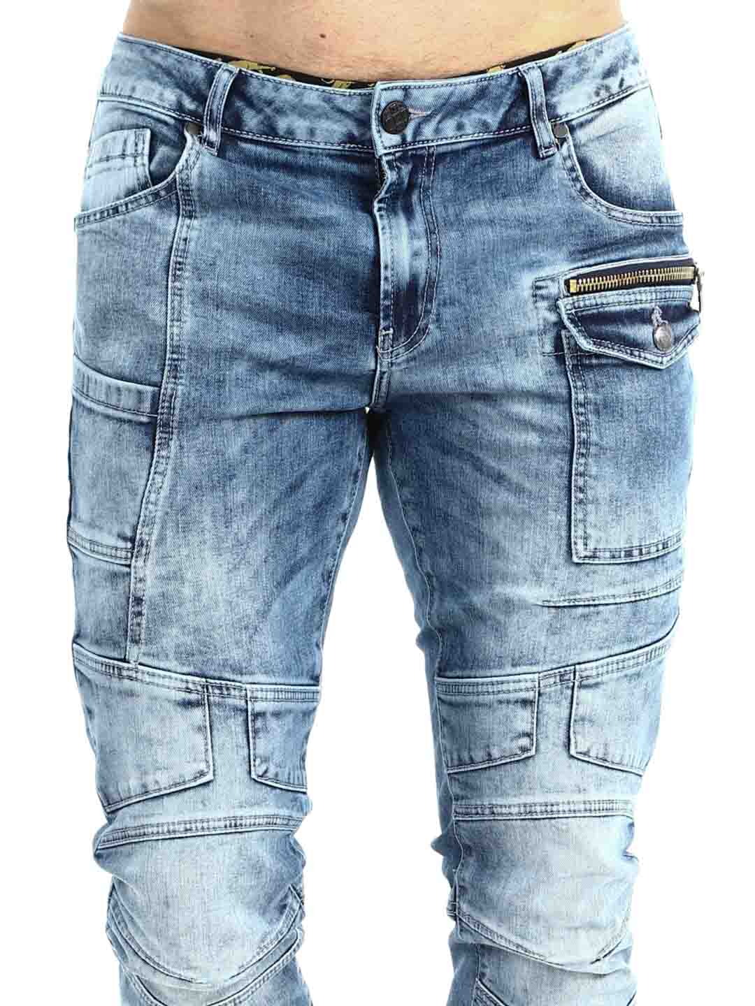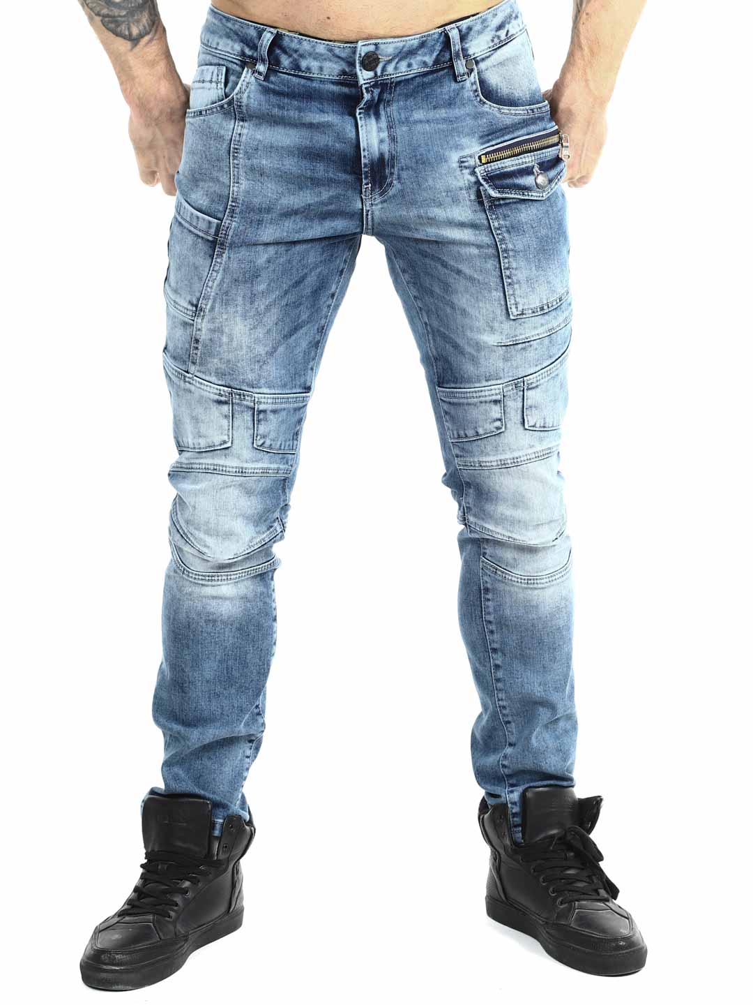 These jeans combine modern street style with a sporty and functional design. The washed blue denim gives a lively and authentic look, while the defined seams and panel details along the legs create a dynamic and trendy appearance. The decorative zipper at the pocket enhances the urban feel and adds an extra stylish detail. Perfect for those who want a pair of jeans that work both for everyday wear and for a more dressed-up street outfit.