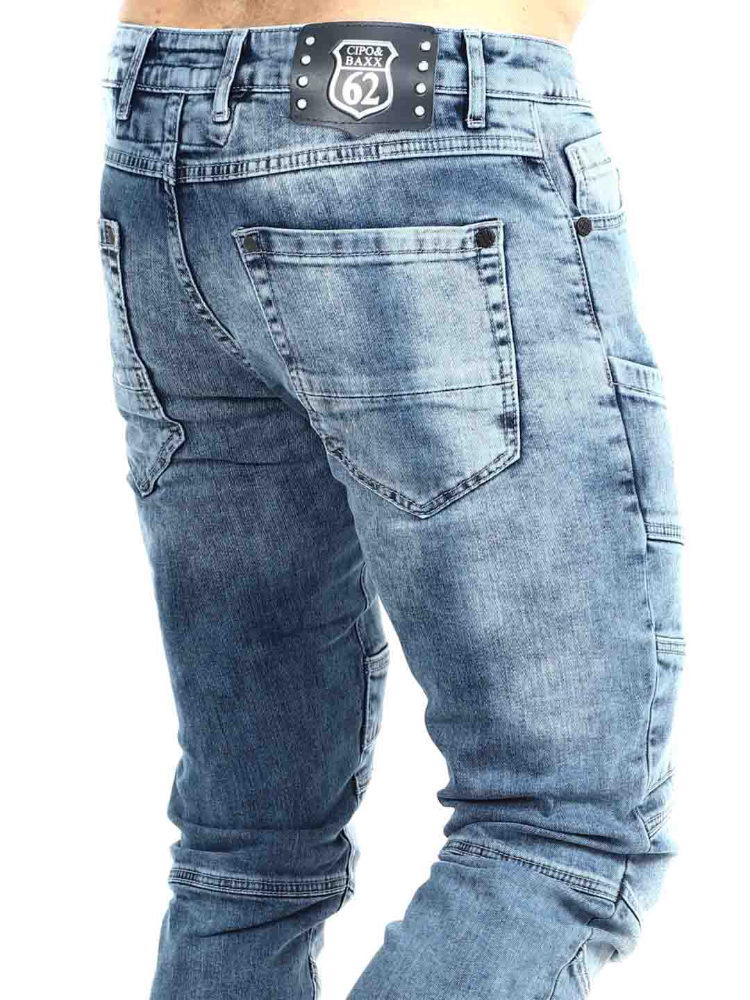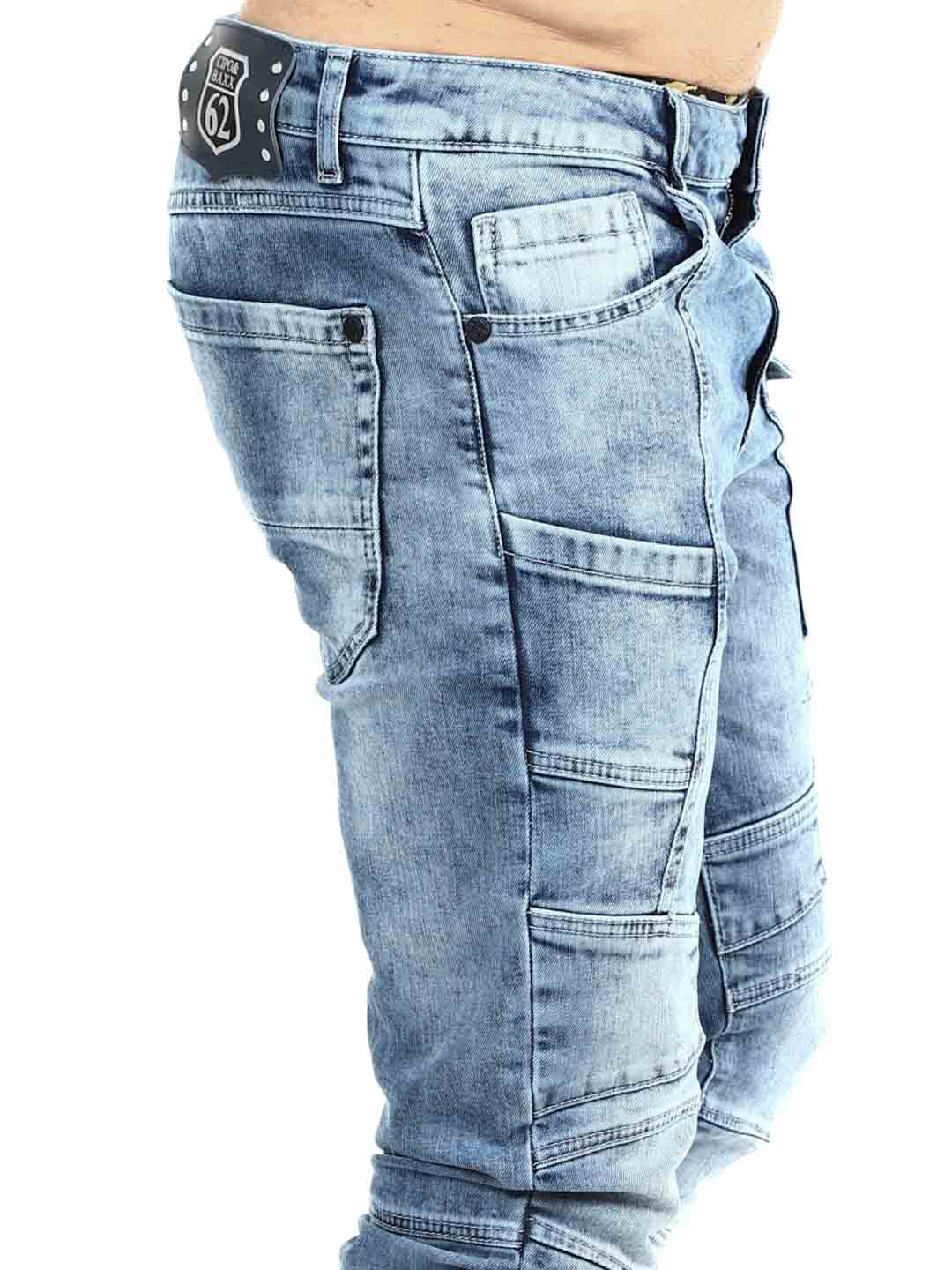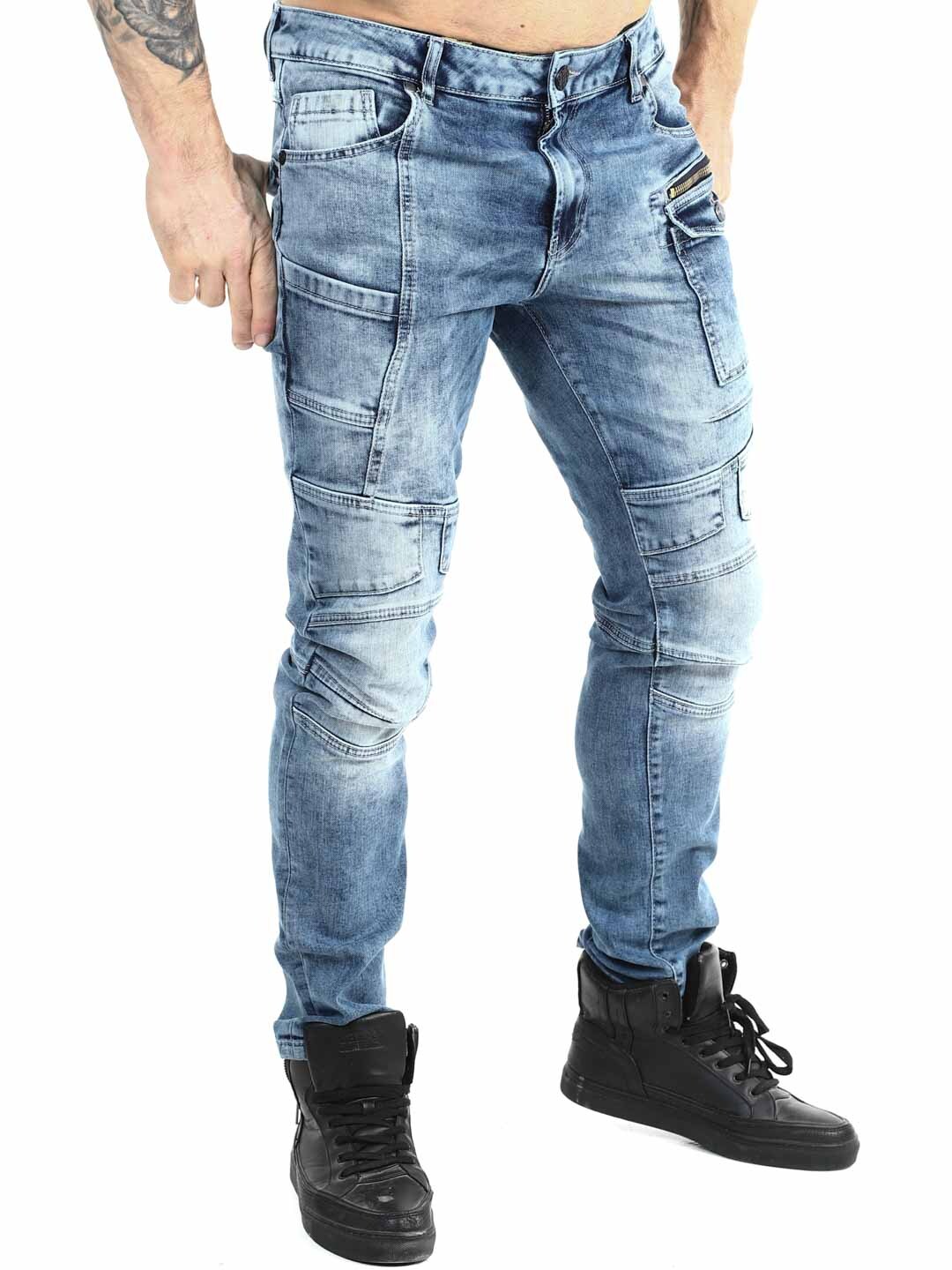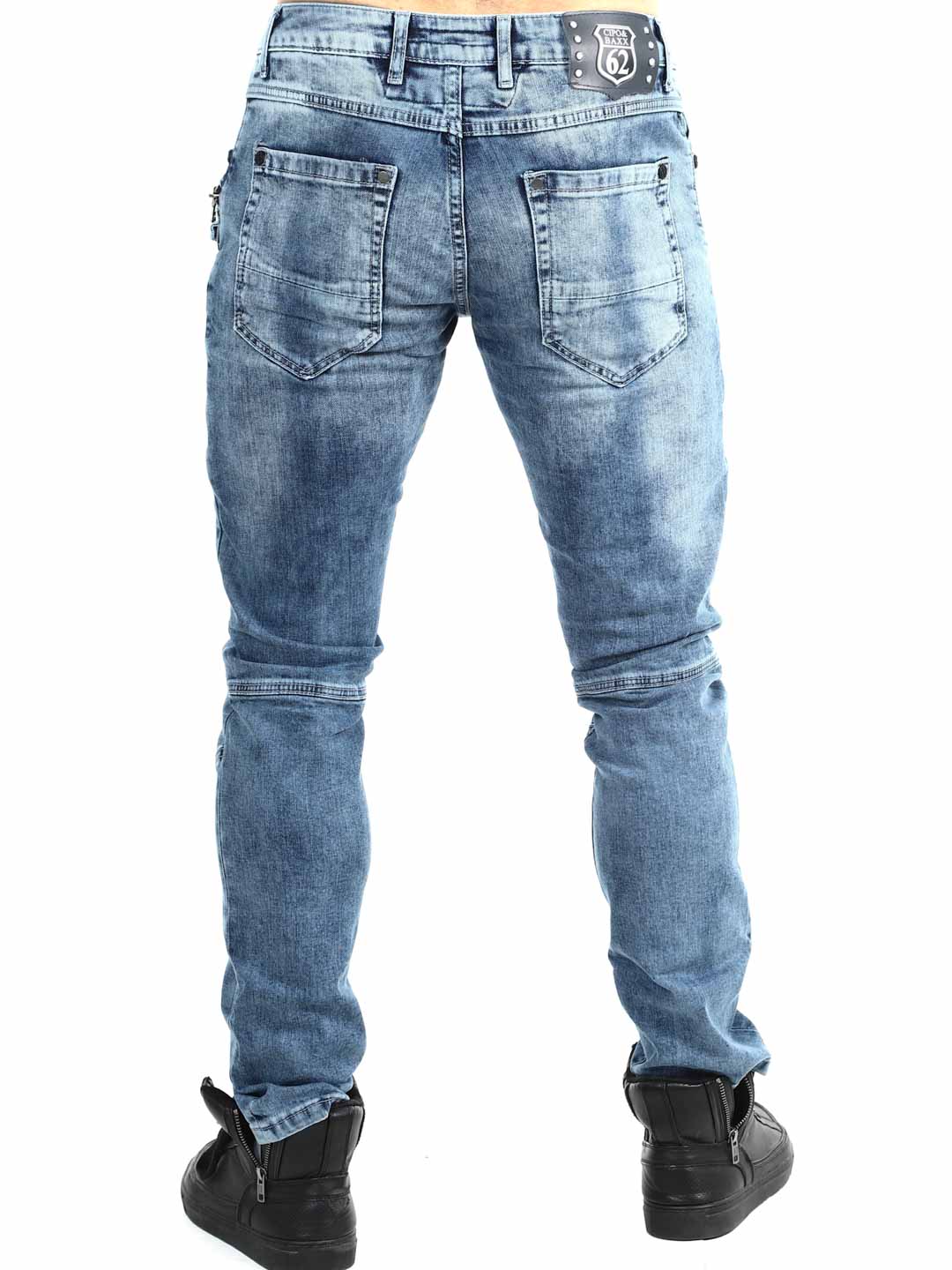 These jeans combine modern street style with a sporty and functional design. The washed blue denim gives a lively and authentic look, while the defined seams and panel details along the legs create a dynamic and trendy appearance. The decorative zipper at the pocket enhances the urban feel and adds an extra stylish detail. Perfect for those who want a pair of jeans that work both for everyday wear and for a more dressed-up street outfit.