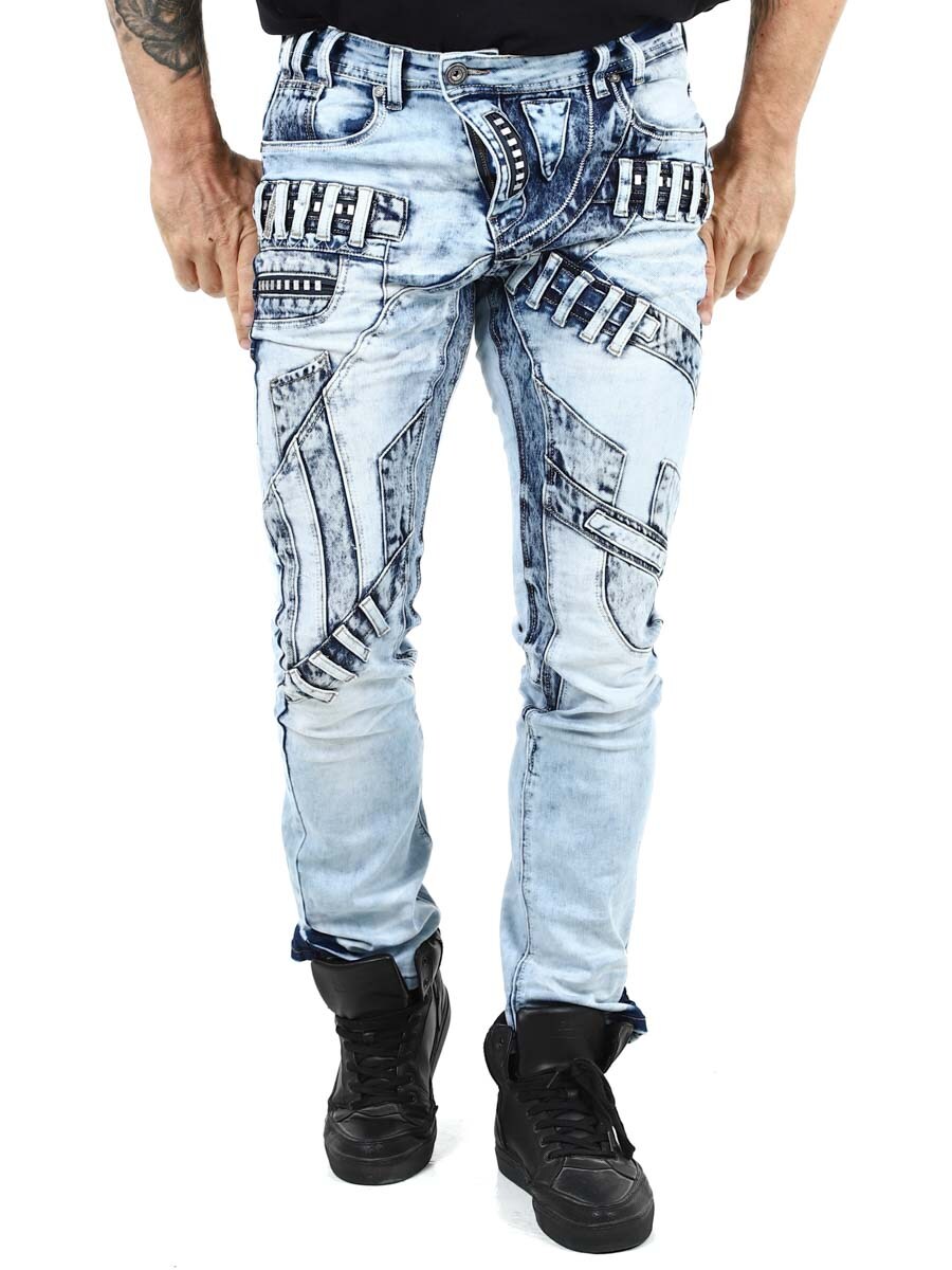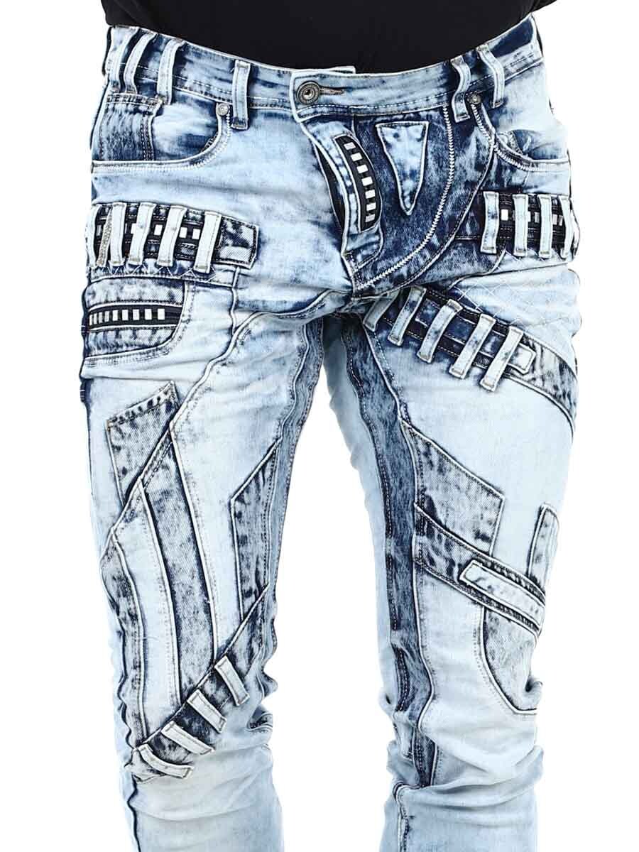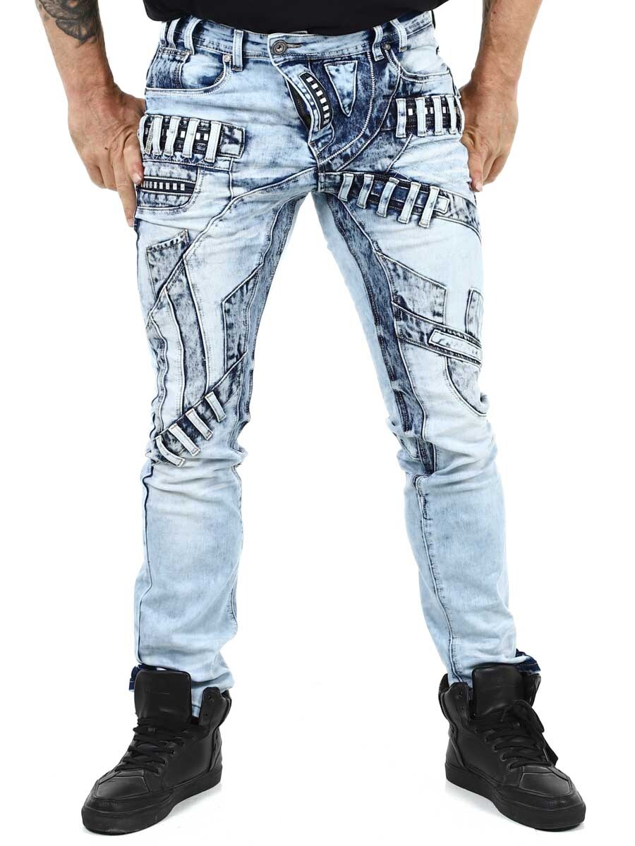 Unique jeans made from washed light denim with rips, zips and panels that create an expressive yet stylish look. Perfect for those who want to stand out from the crowd!