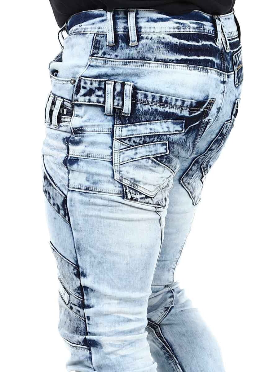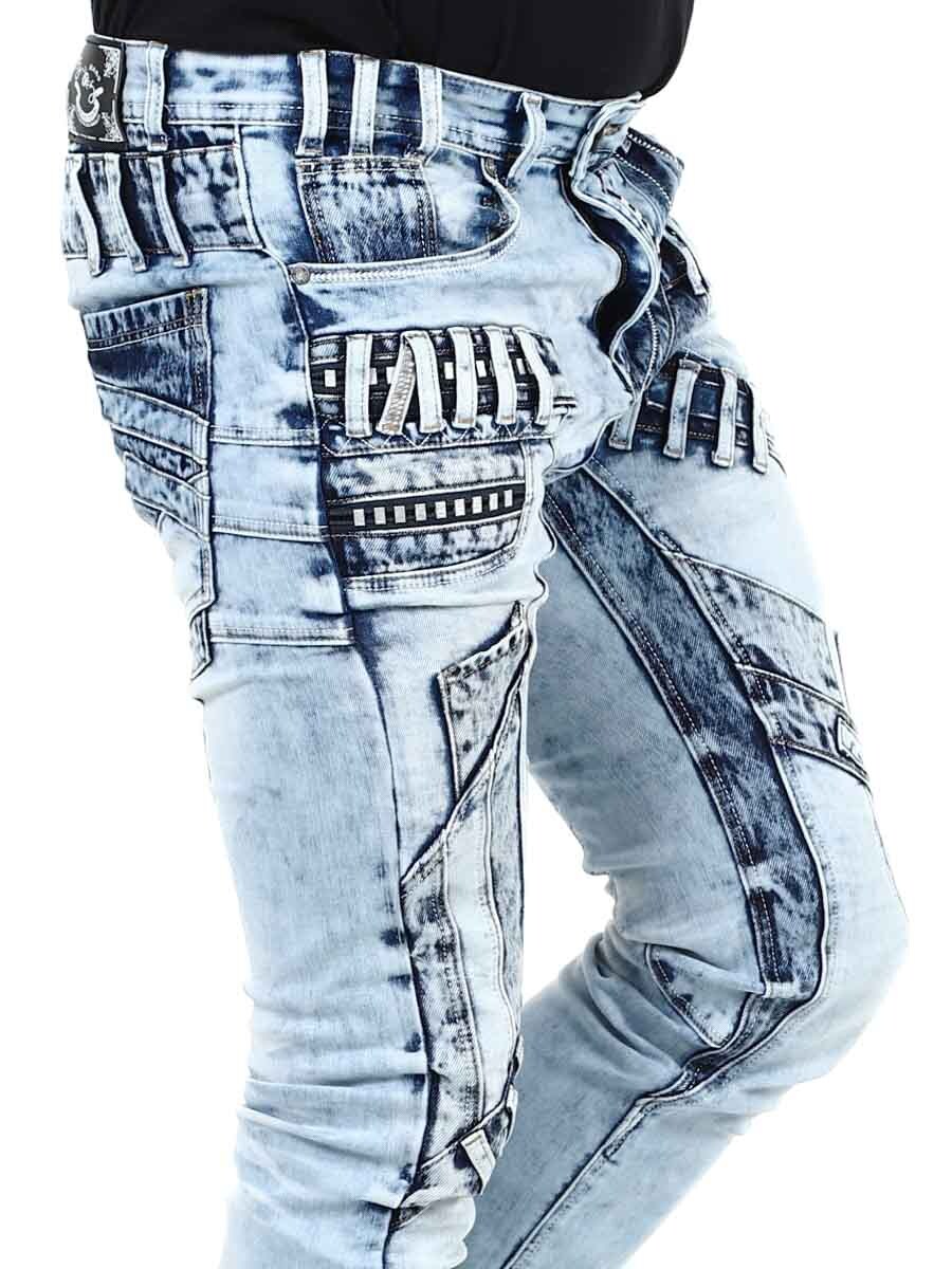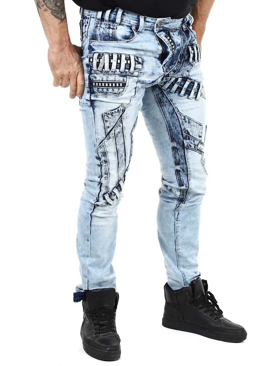 Unique jeans made from washed light denim with rips, zips and panels that create an expressive yet stylish look. Perfect for those who want to stand out from the crowd!