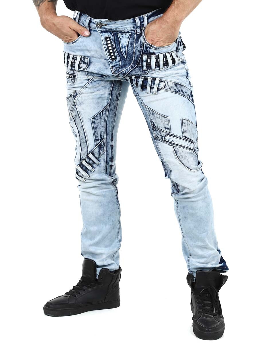 Unique jeans made from washed light denim with rips, zips and panels that create an expressive yet stylish look. Perfect for those who want to stand out from the crowd!