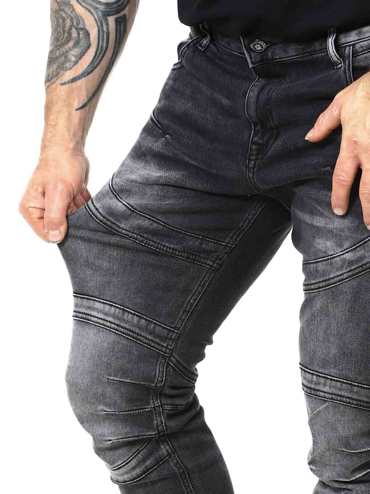 Stonewashed jeans with coarse stitching that enhances the design. Made from soft and flexible denim that molds to the body for a perfect fit without compromising on freedom of movement. They have five pockets and a zip fly.