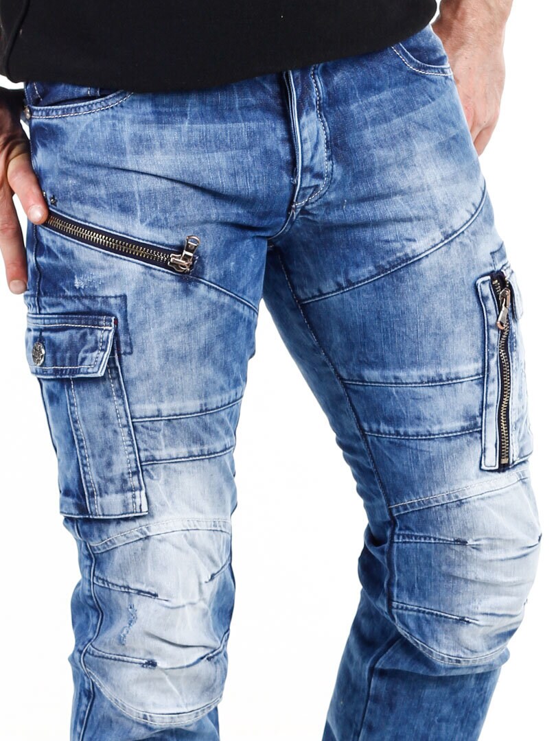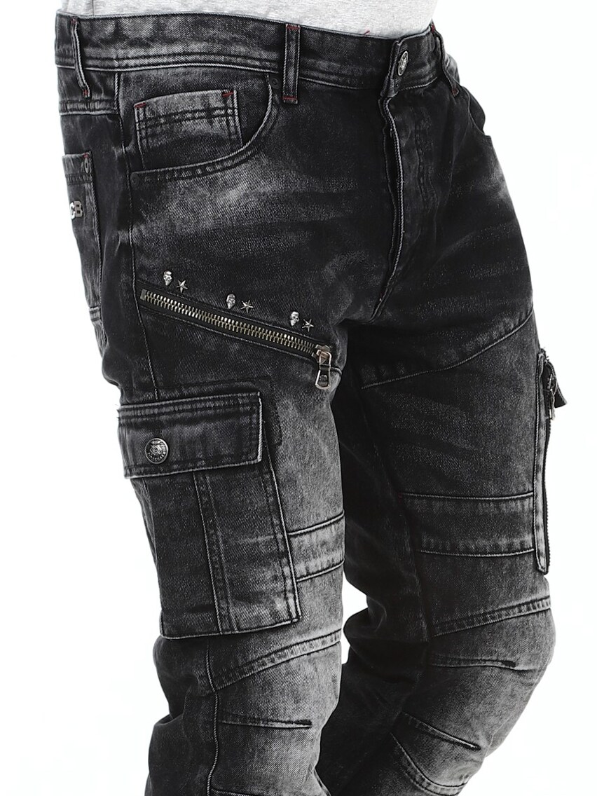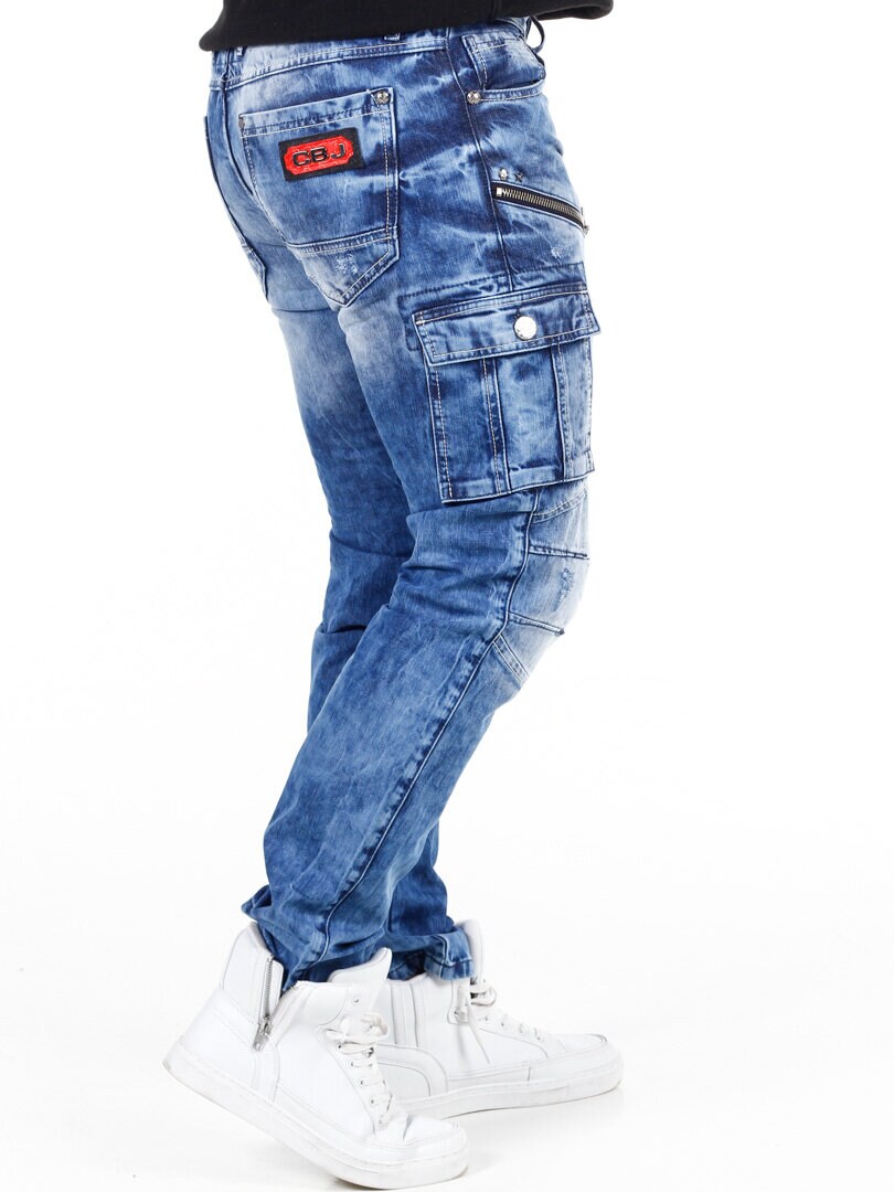 Made from 100% cotton with spacious back pockets, three front pockets, and two cargo pockets on the legs.