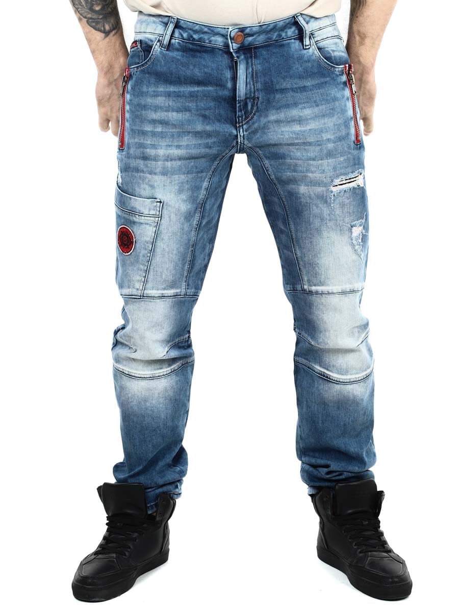 Stonewashed jeans with rips and zips to enhance the design. Made from soft and flexible denim that hugs the body for a perfect fit without compromising on freedom of movement. They have several pockets and a zip fly.