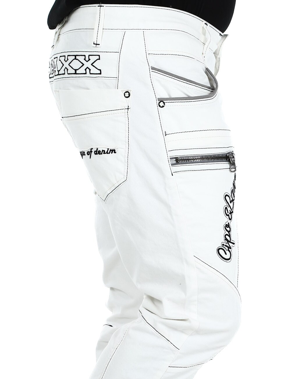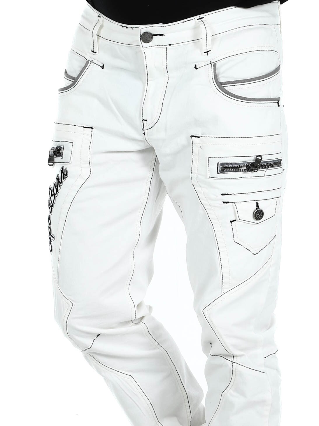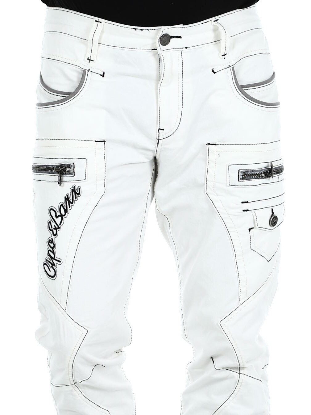 White jeans with gray stitching from Cipo & Baxx