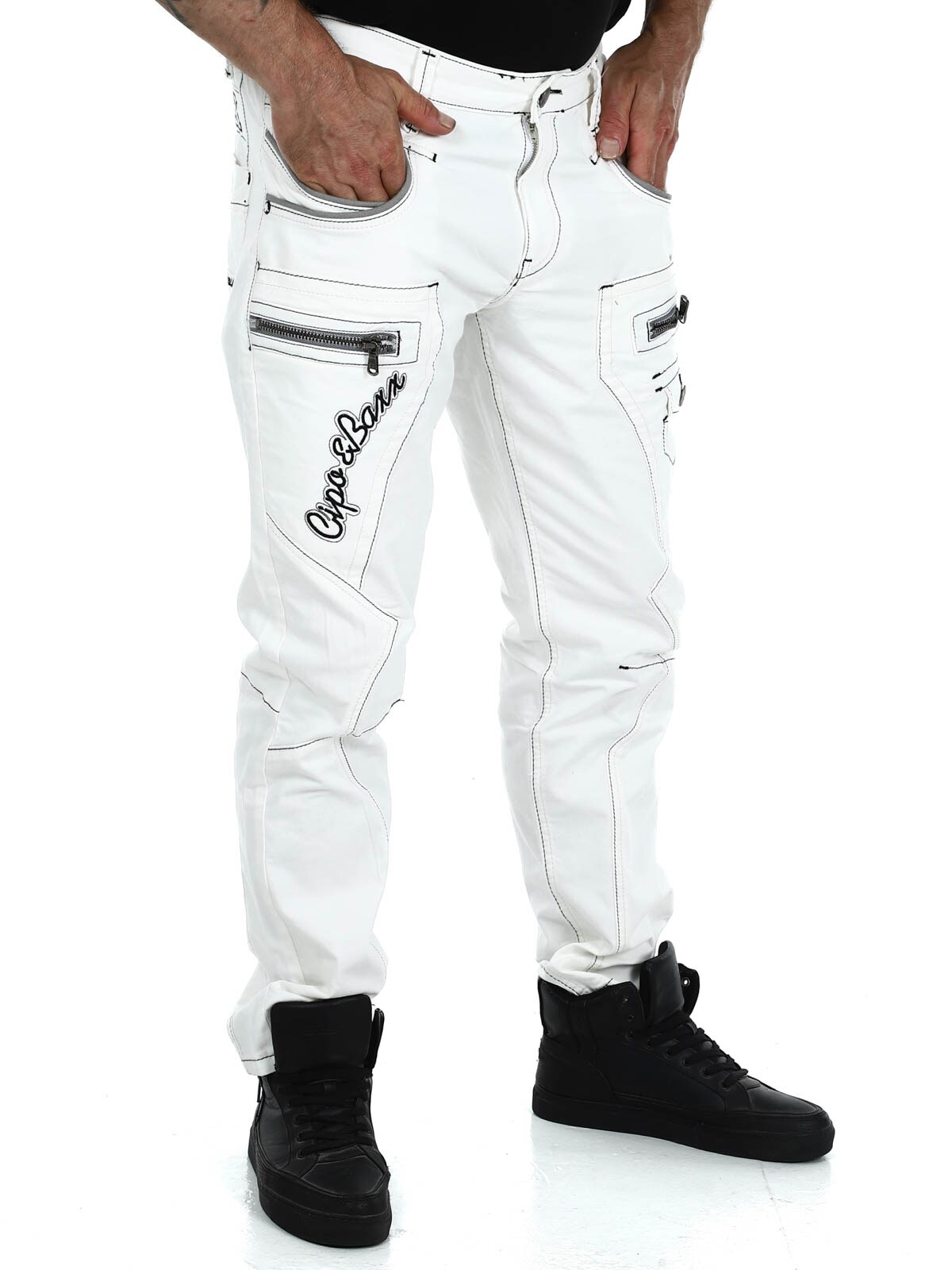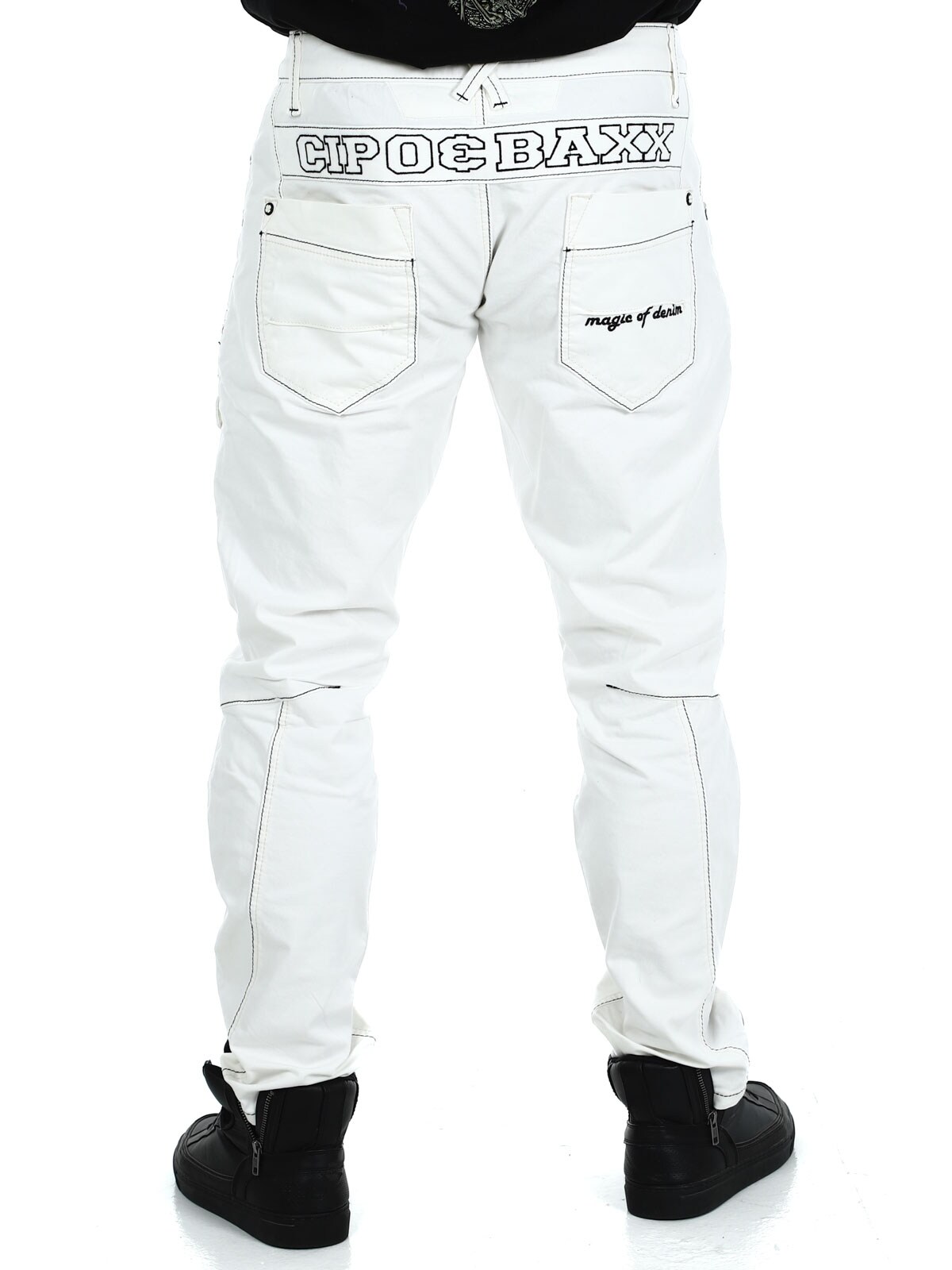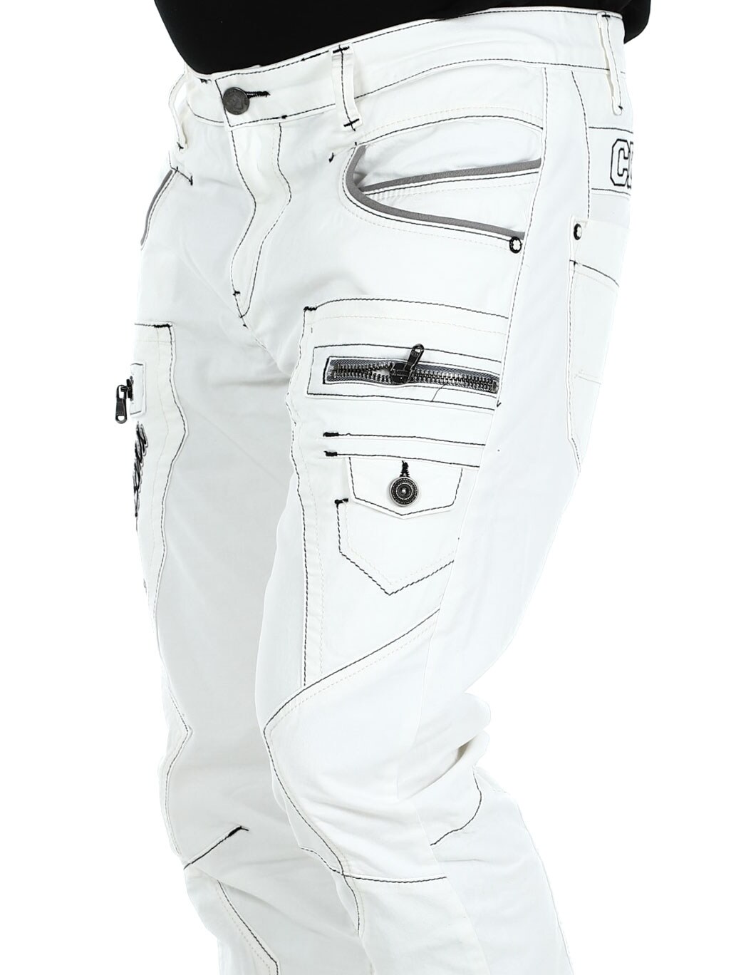 White jeans with gray stitching from Cipo & Baxx