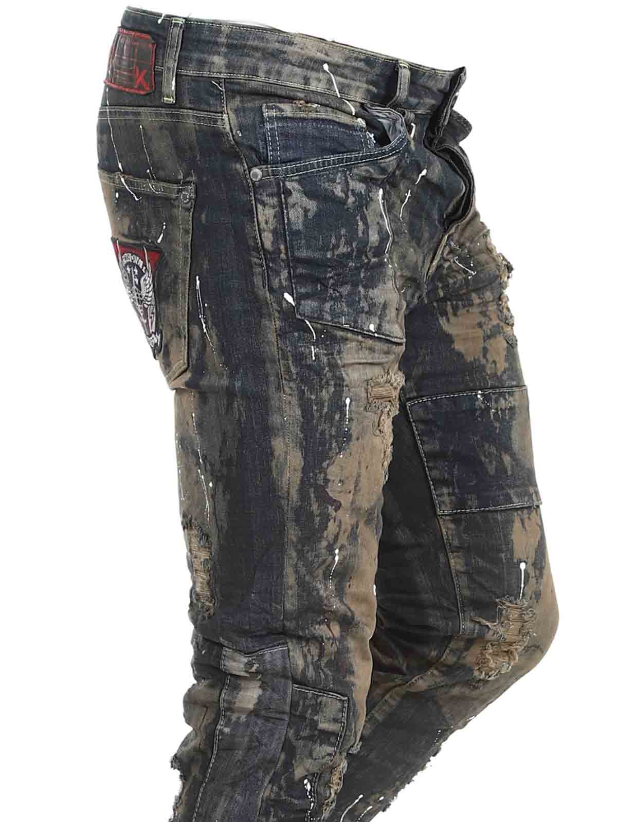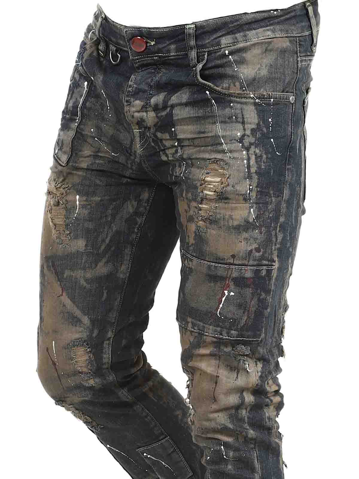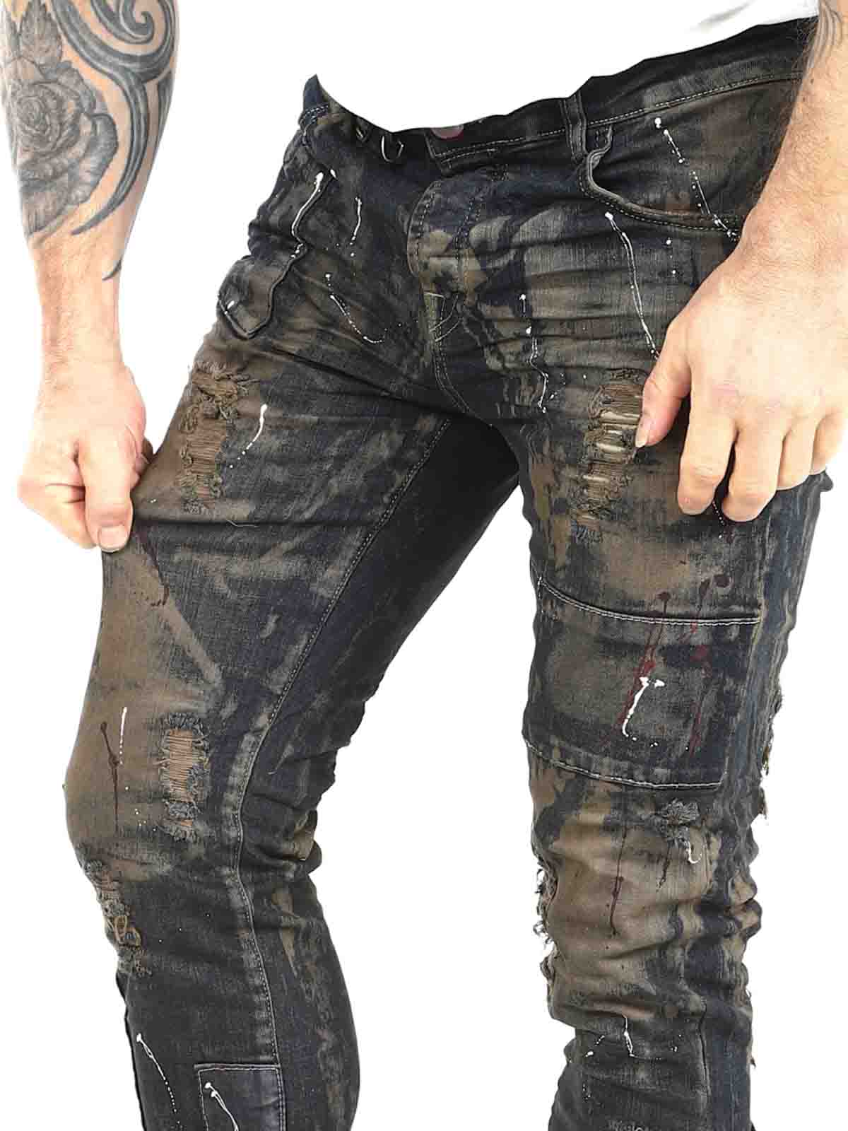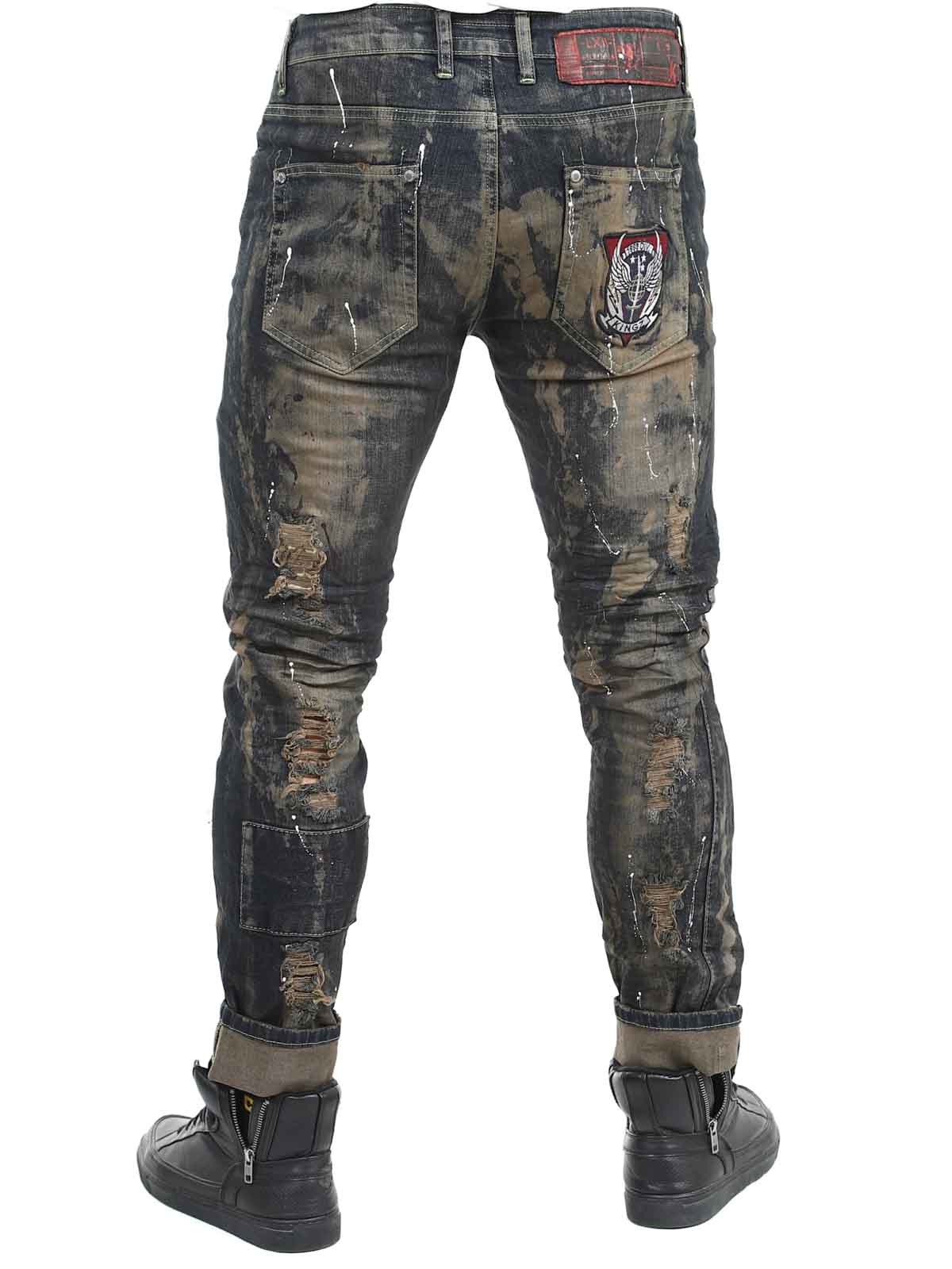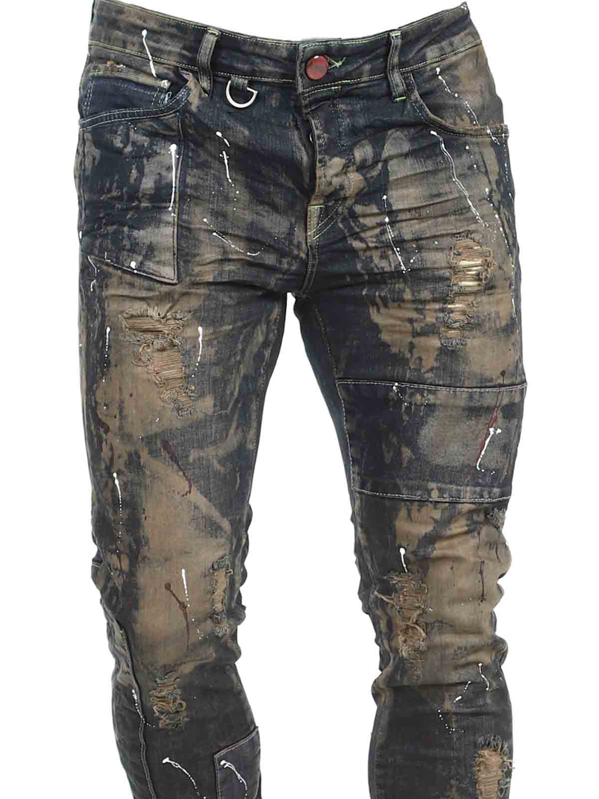 Ripped jeans with an eye-catching design. They have three front pockets, two back pockets and a slim fit. With a vintage-inspired green wash and embroidered print, you get a look that combines attitude with rugged design.