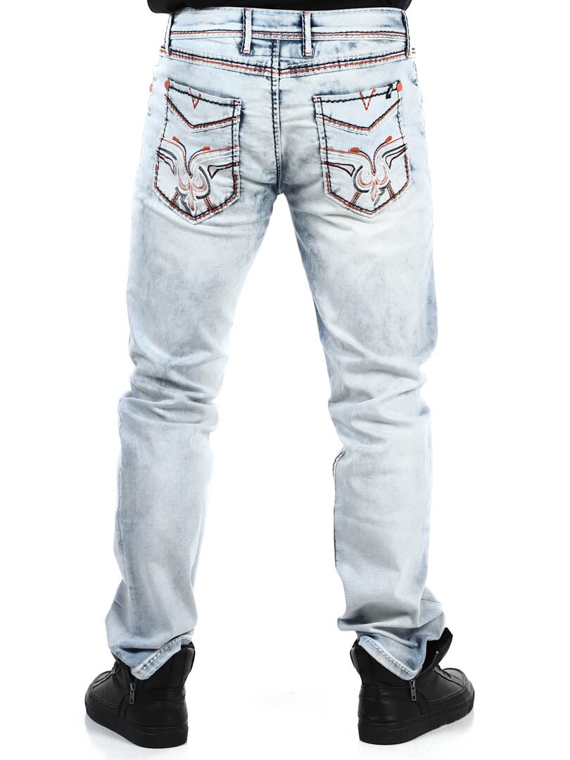 Washed denim jeans with decorative contrast stitching for a cool and trendy style. Stretchy style with three front pockets and two roomy back pockets with stylish embroidery. With these jeans you get a pair of pants that stands out from the crowd and is suitable for everyday wear as well as for parties!